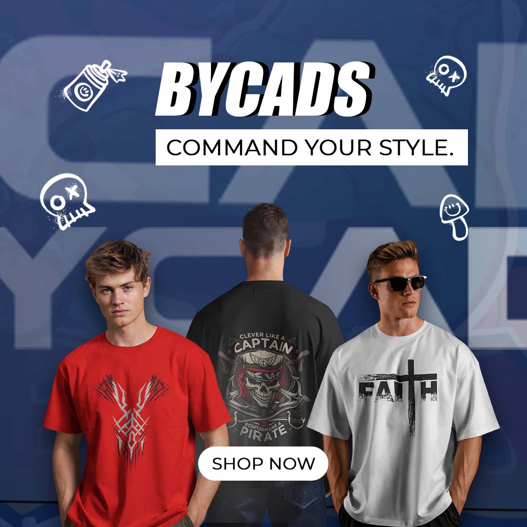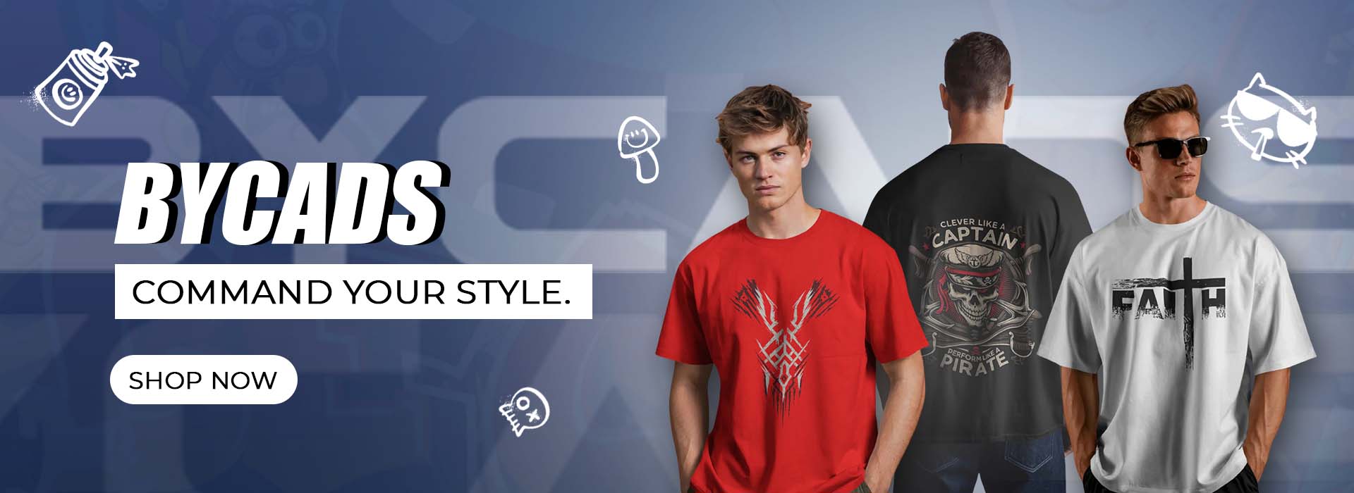 At BYCADS, each tee is designed to tell a story. We combine bold artwork, legendary themes, and premium fabrics to create pieces that stand out and feel amazing.