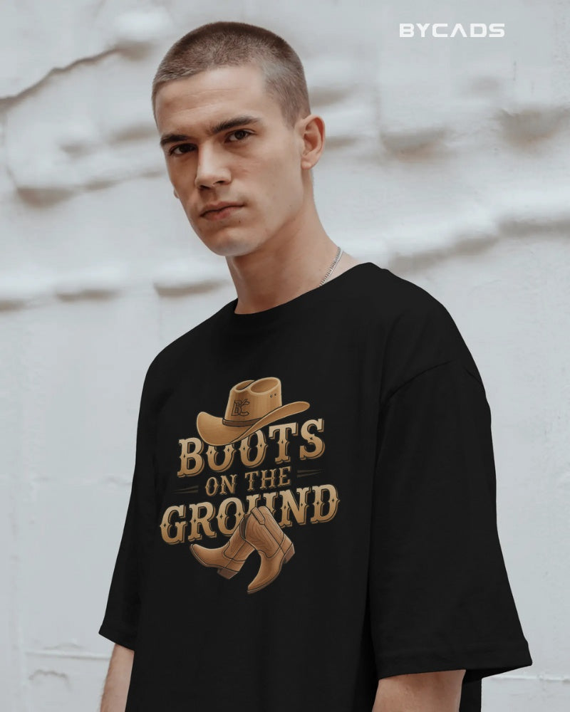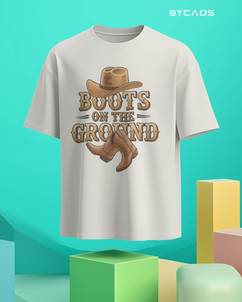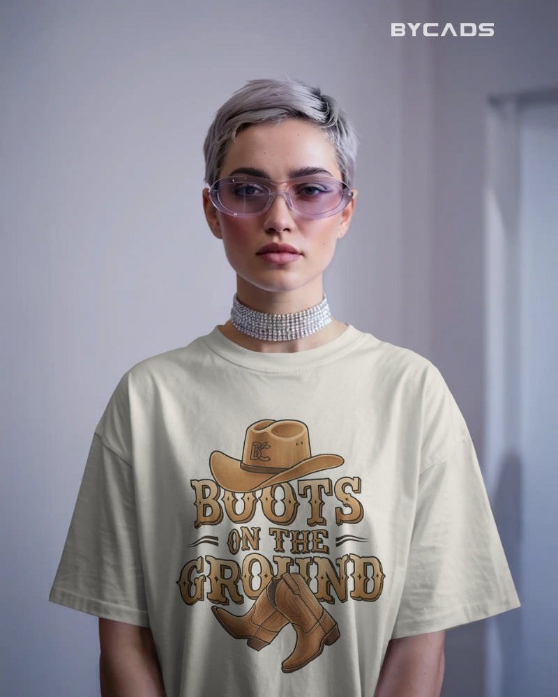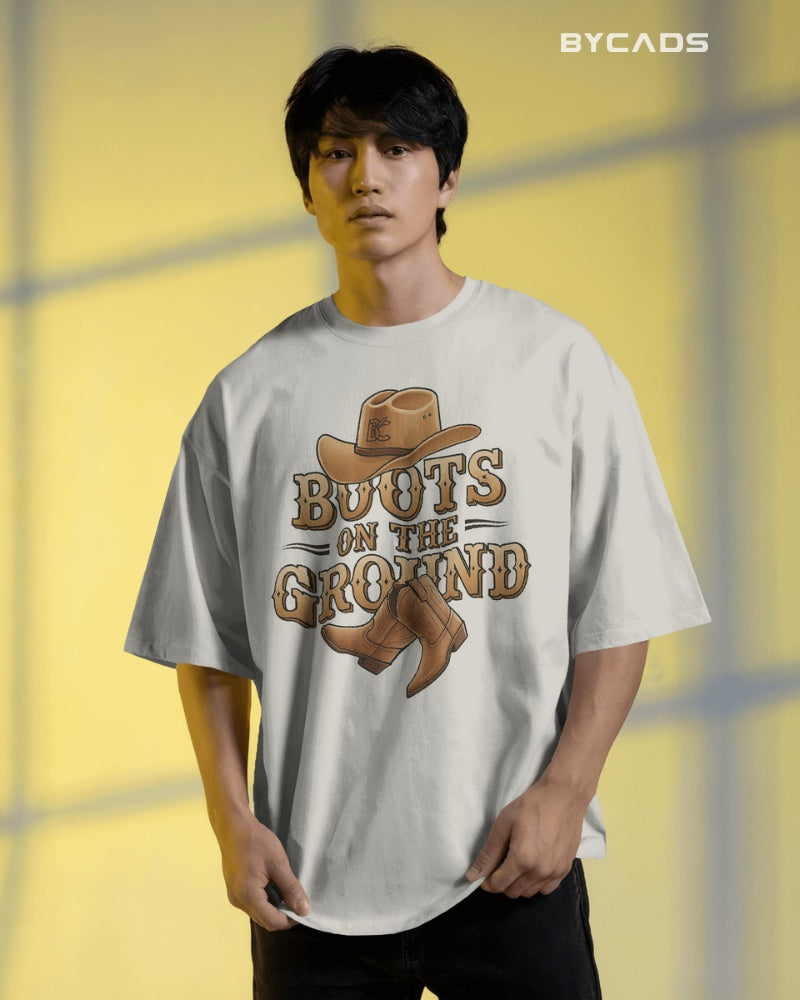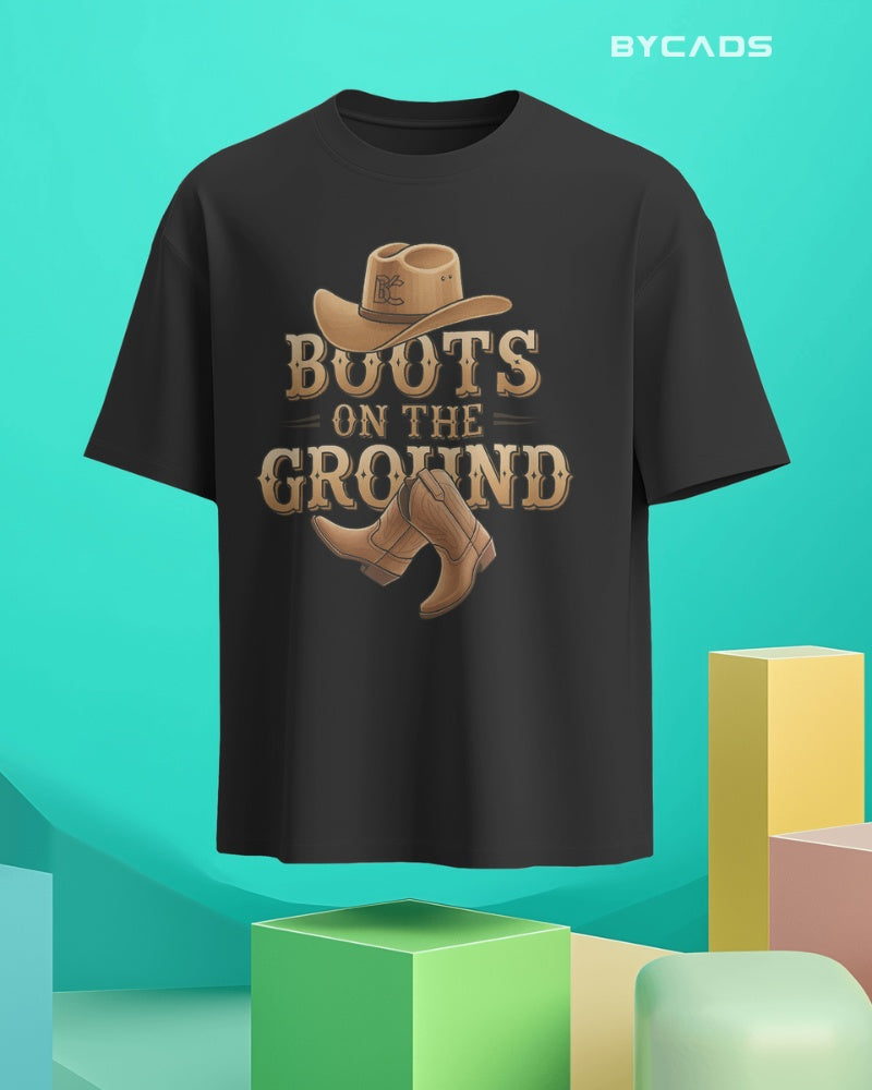 Step out with a rugged Western vibe in Bycads’ Boots On The Ground Oversized T-Shirt. This bold graphic tee features classic cowboy boots and hat artwork paired with a statement that’s all about grit, adventure, and living life at full stride. Designed for a relaxed oversized fit, this tee is ideal for rodeo fans, country lovers, or anyone who wants to add a dash of cowboy attitude to their everyday streetwear.
