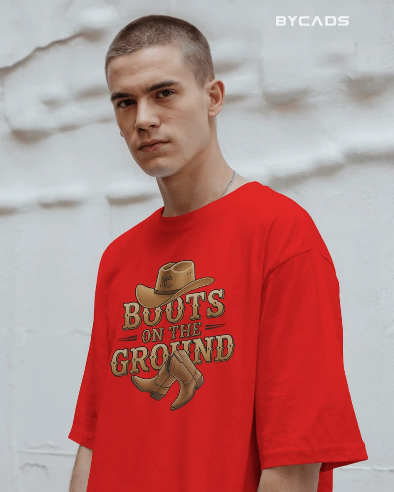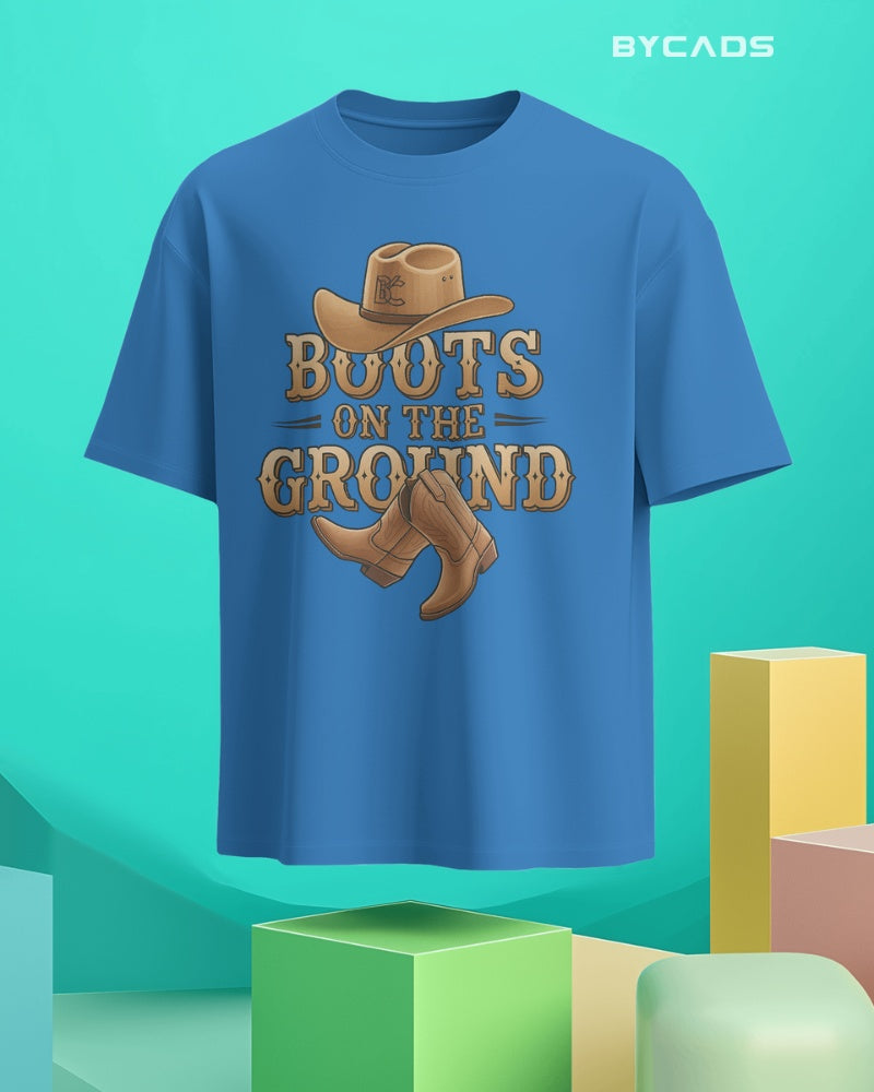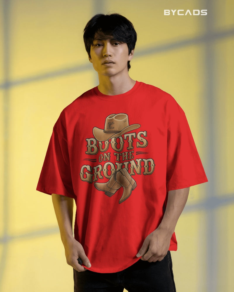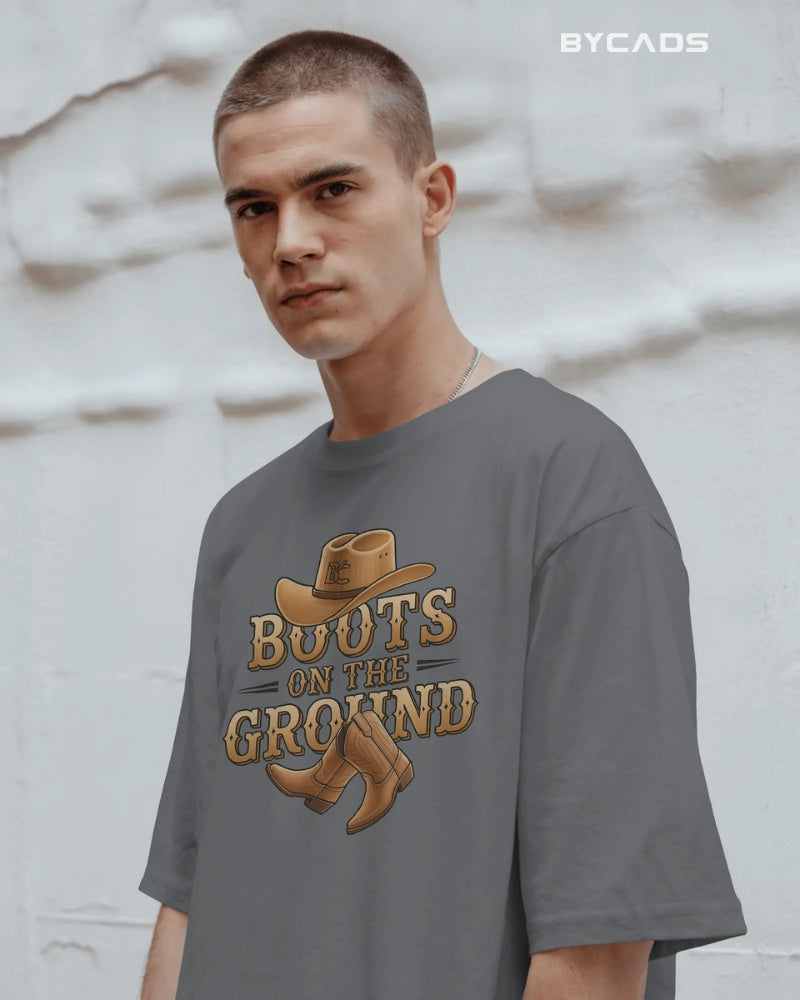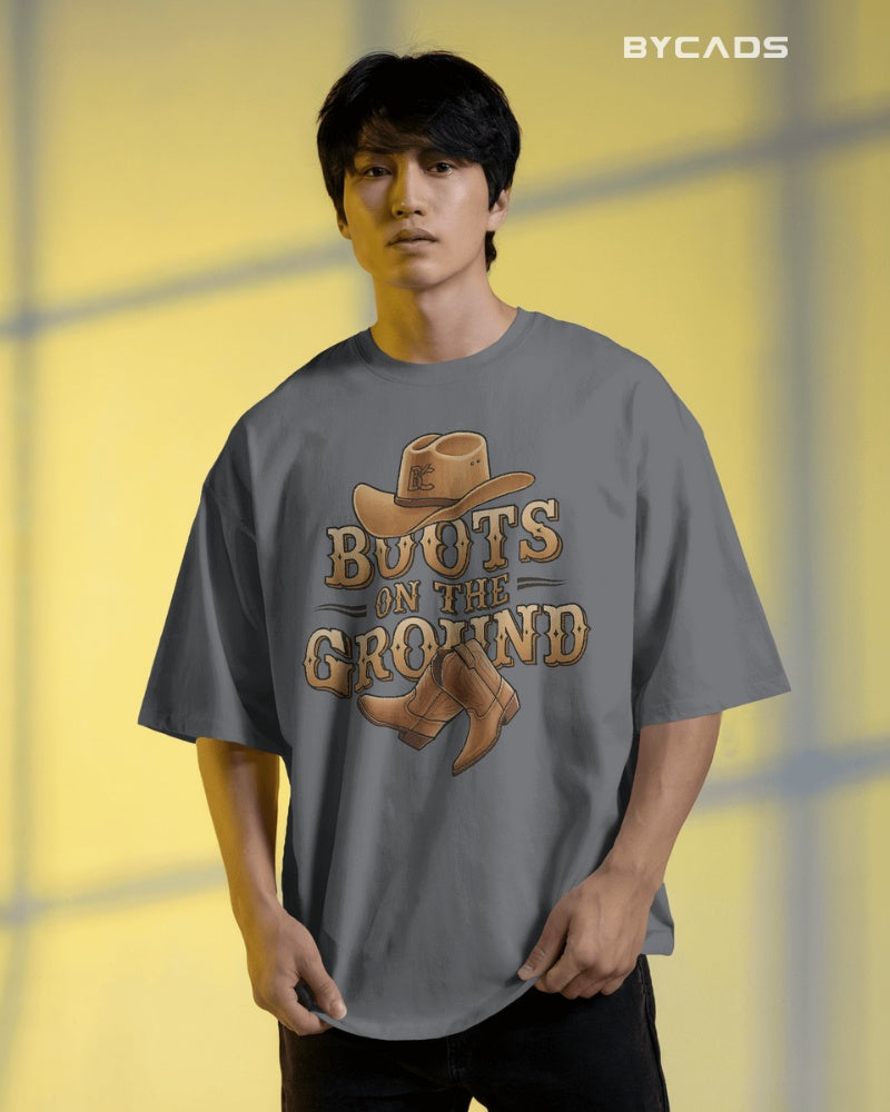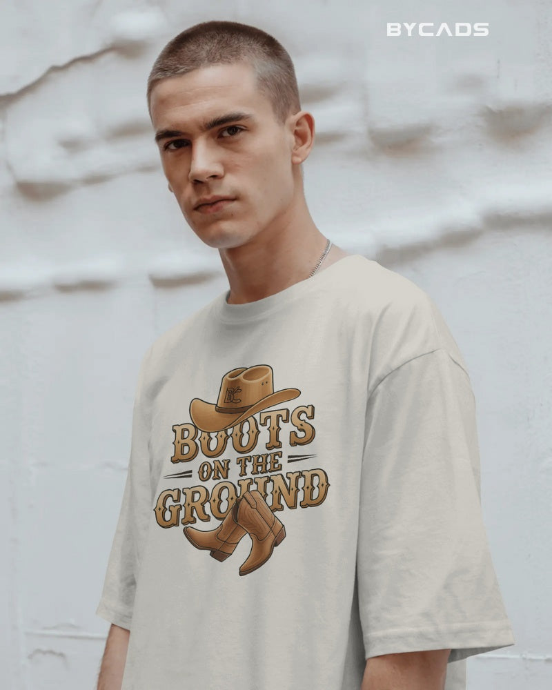 Step out with a rugged Western vibe in Bycads’ Boots On The Ground Oversized T-Shirt. This bold graphic tee features classic cowboy boots and hat artwork paired with a statement that’s all about grit, adventure, and living life at full stride. Designed for a relaxed oversized fit, this tee is ideal for rodeo fans, country lovers, or anyone who wants to add a dash of cowboy attitude to their everyday streetwear.