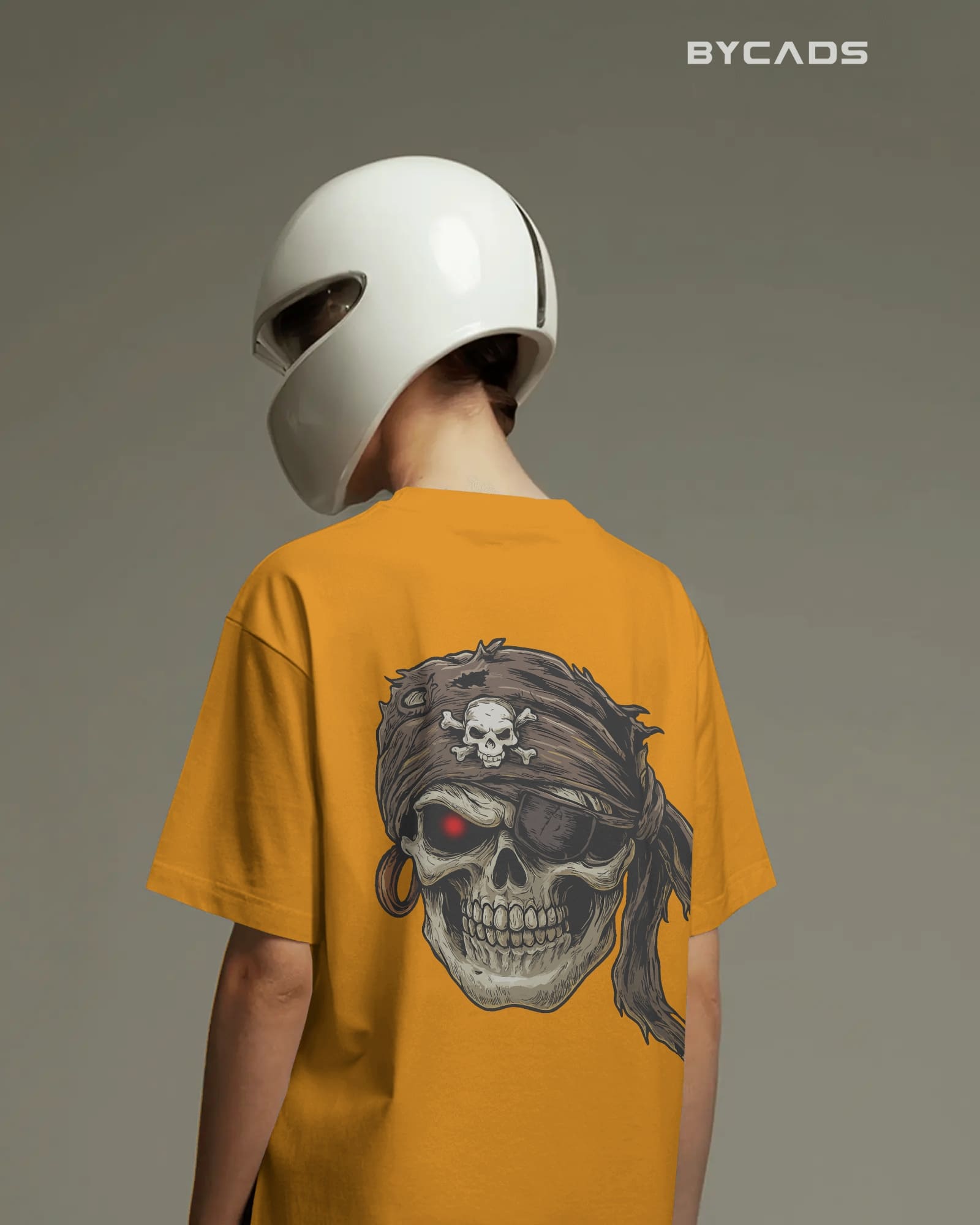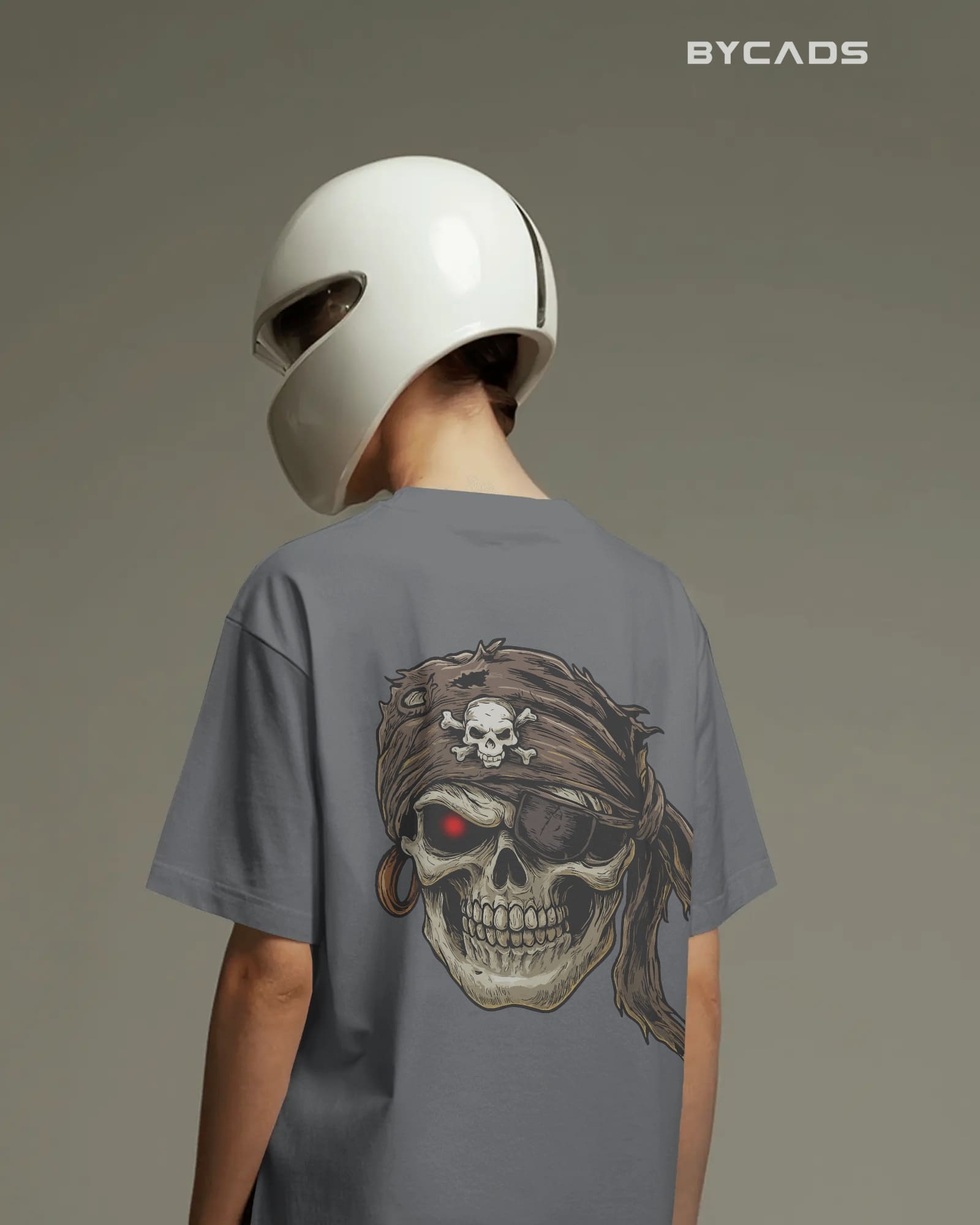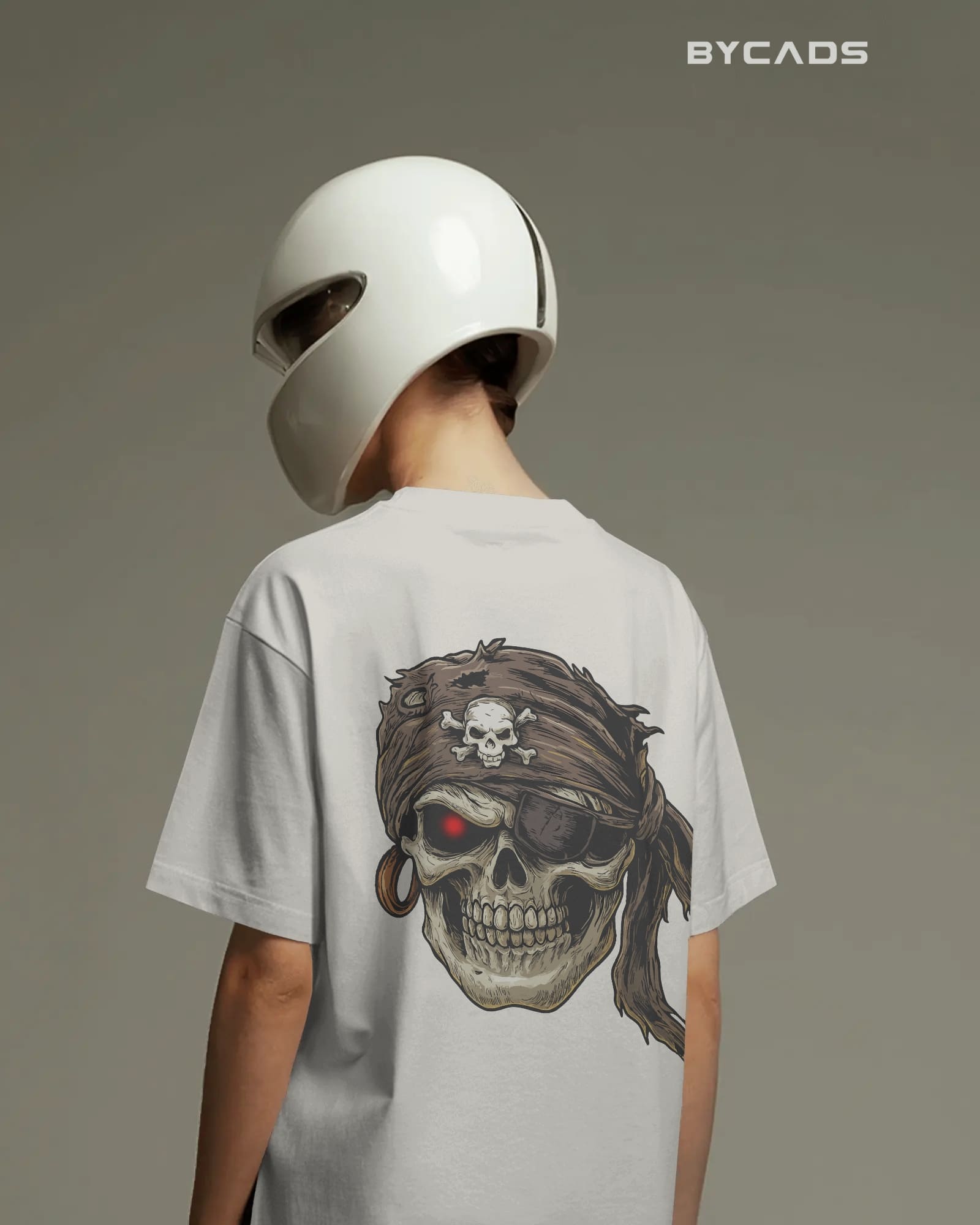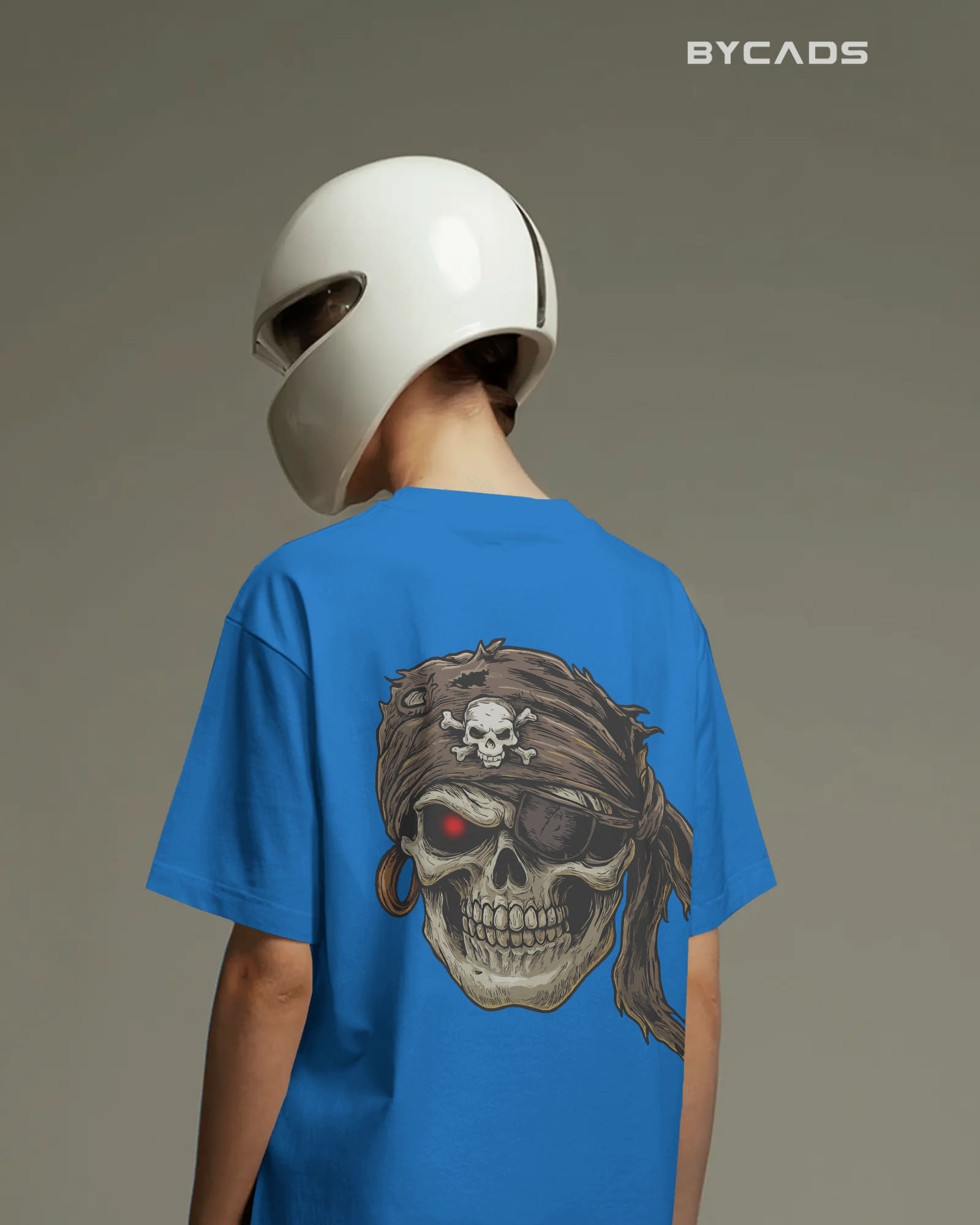 Sail into the future with the BYCADS Cyberskull Pirate Tee. Featuring a cybernetic skull pirate with a glowing red eye and worn-out bandana, this shirt mixes rebellious pirate grit with dark-tech attitude. Designed for rule-breakers, misfits, and the digitally untamed.