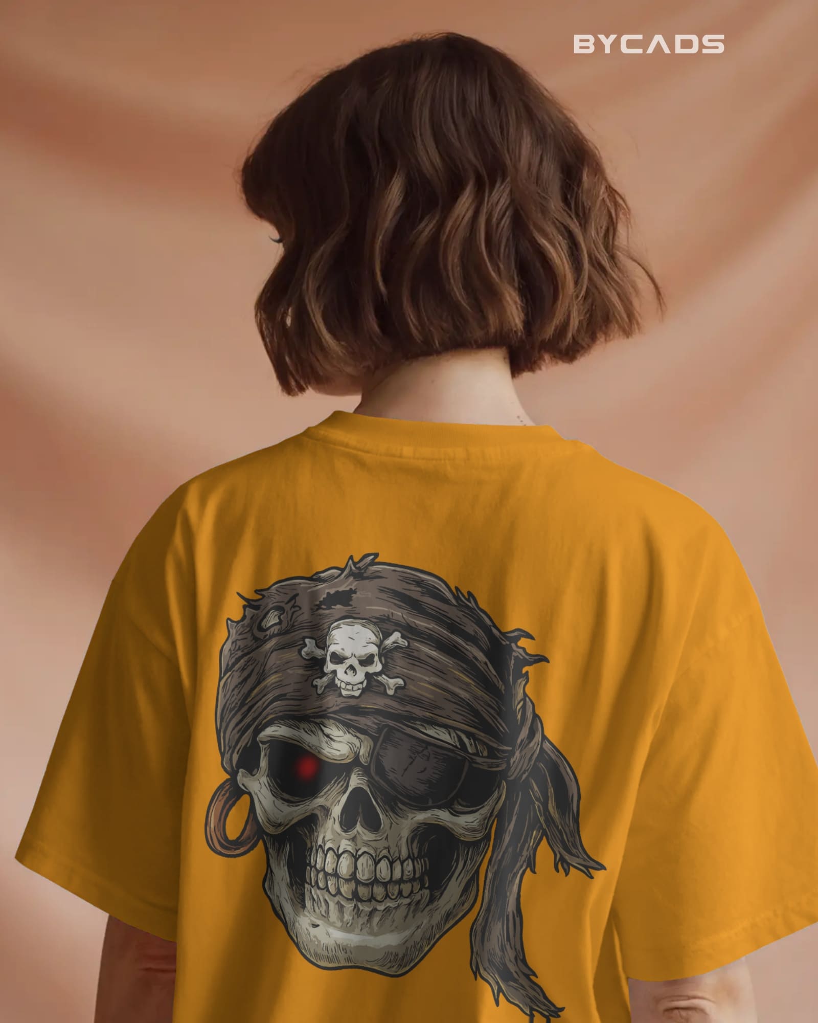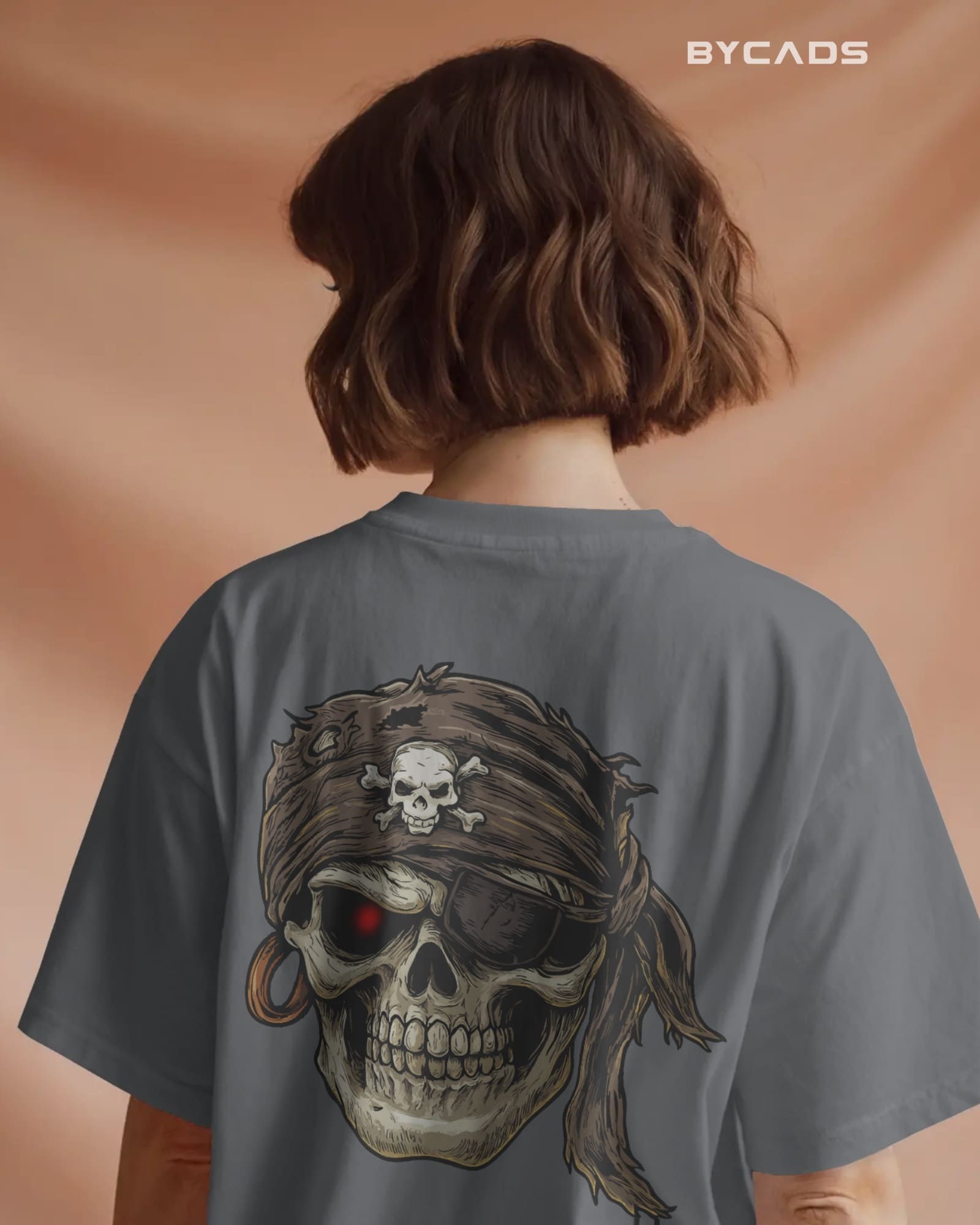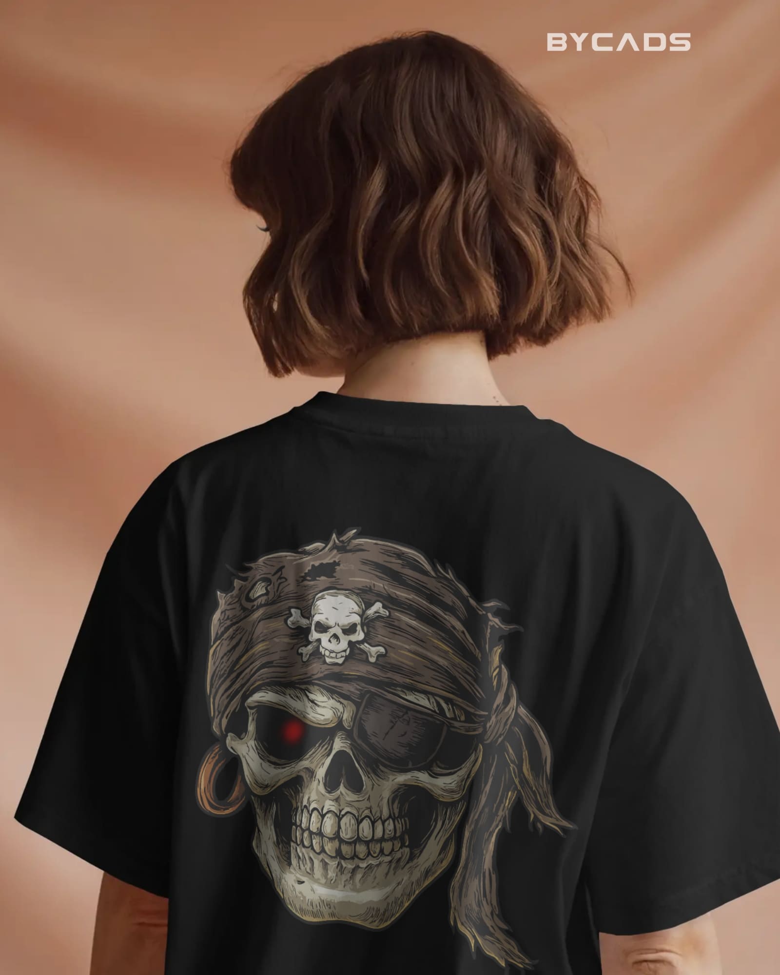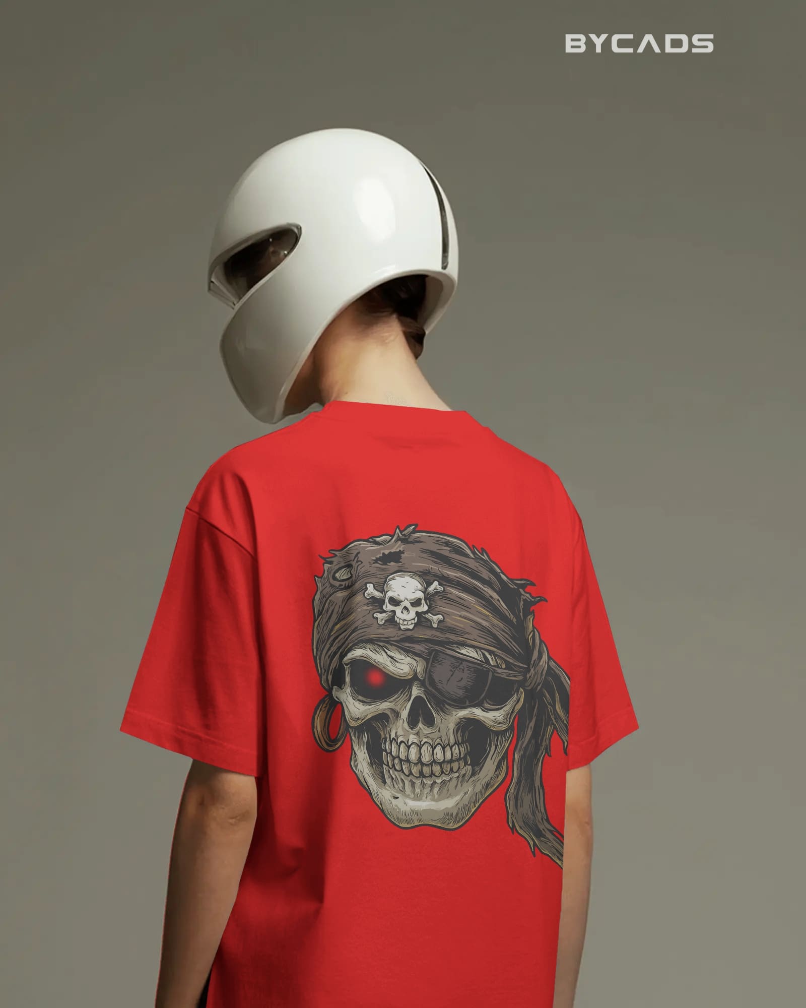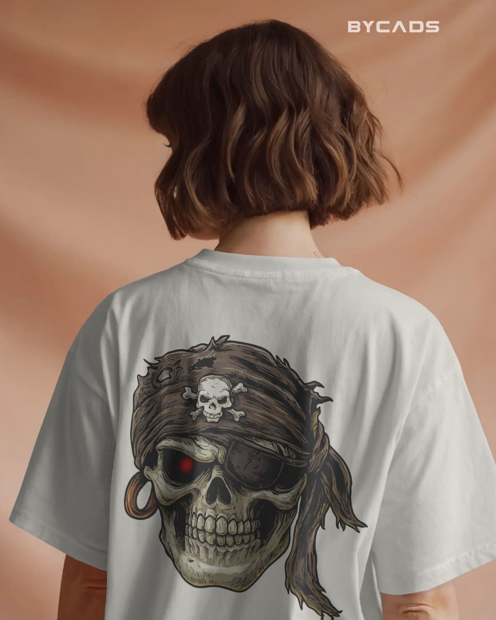 Sail into the future with the BYCADS Cyberskull Pirate Tee. Featuring a cybernetic skull pirate with a glowing red eye and worn-out bandana, this shirt mixes rebellious pirate grit with dark-tech attitude. Designed for rule-breakers, misfits, and the digitally untamed.