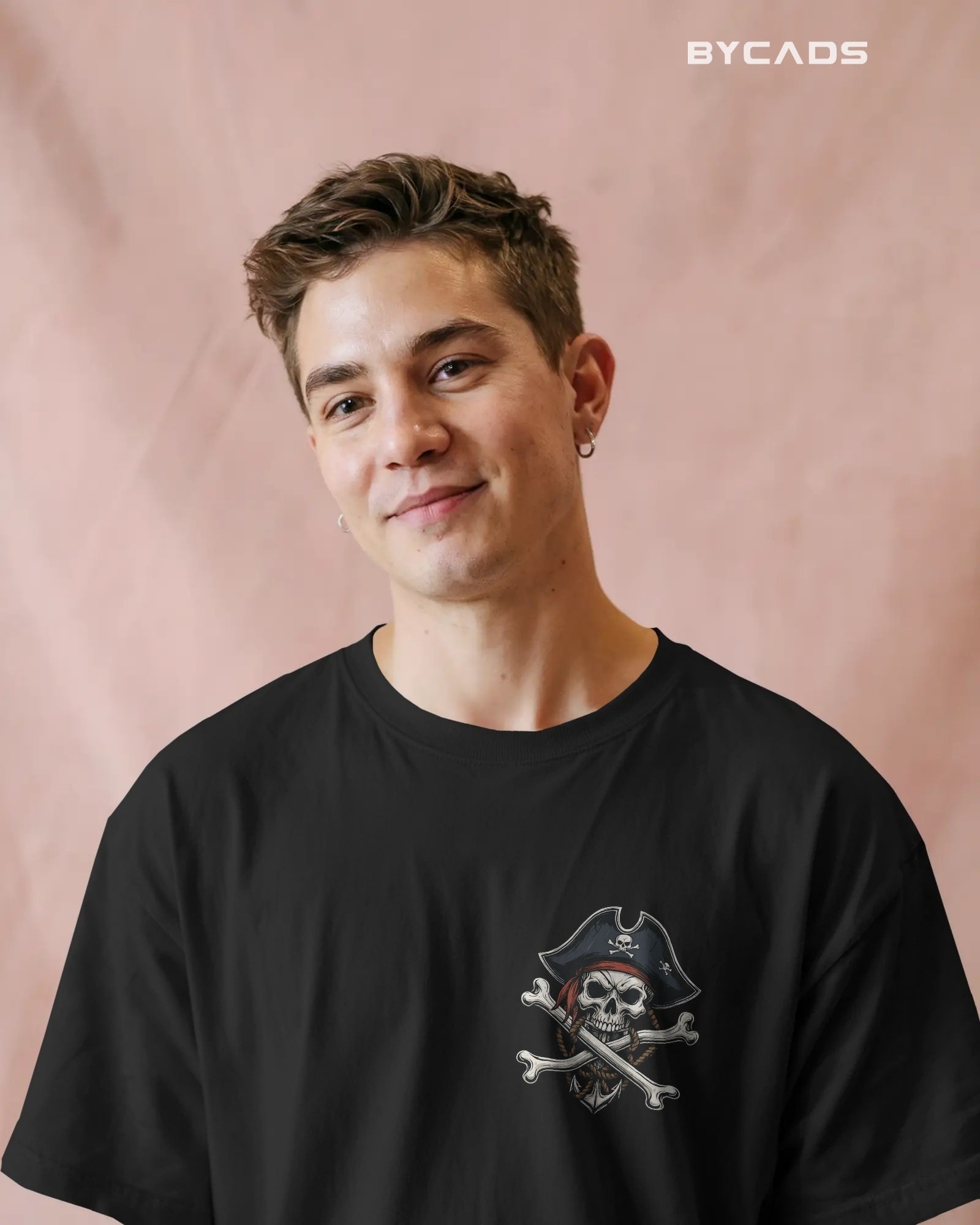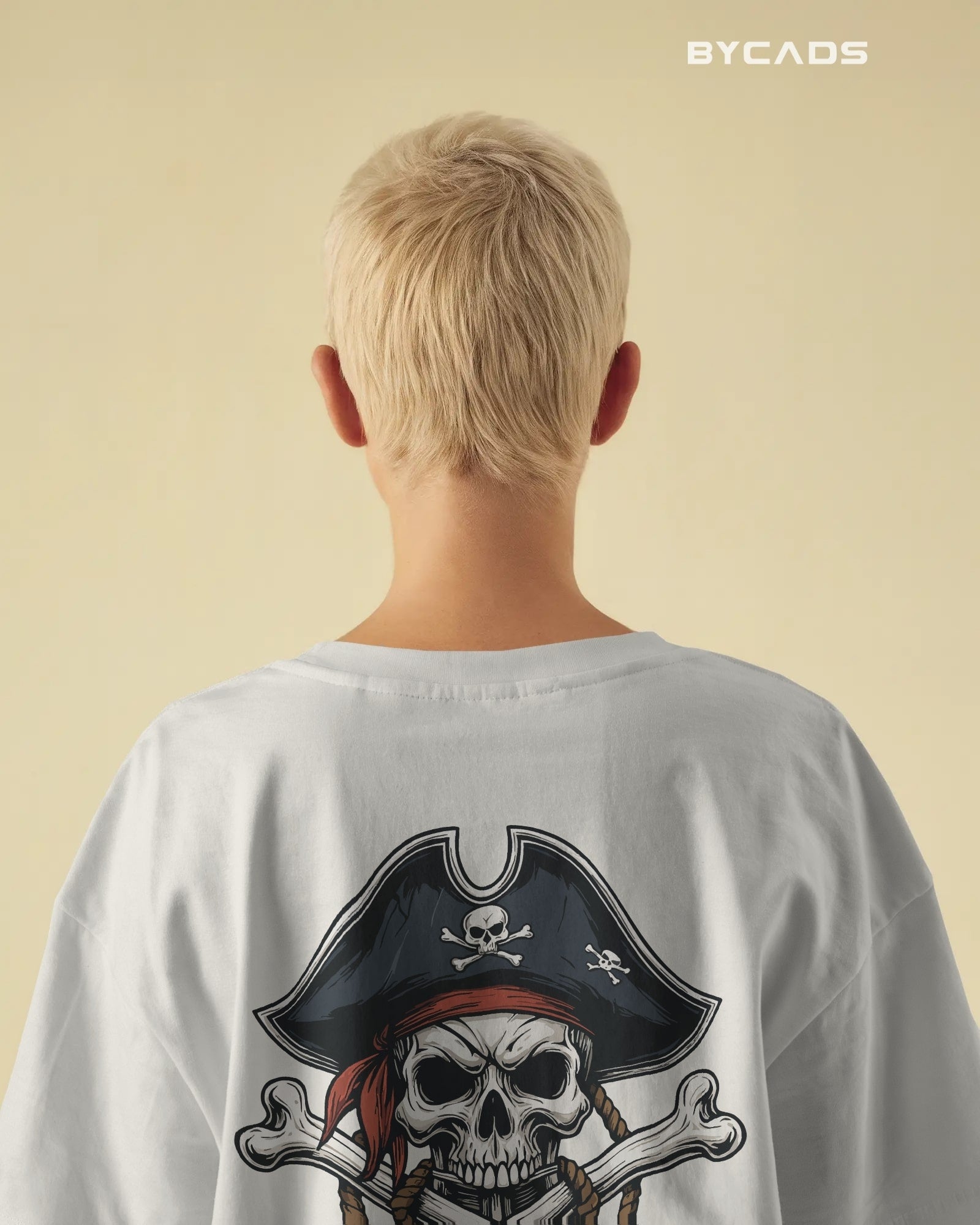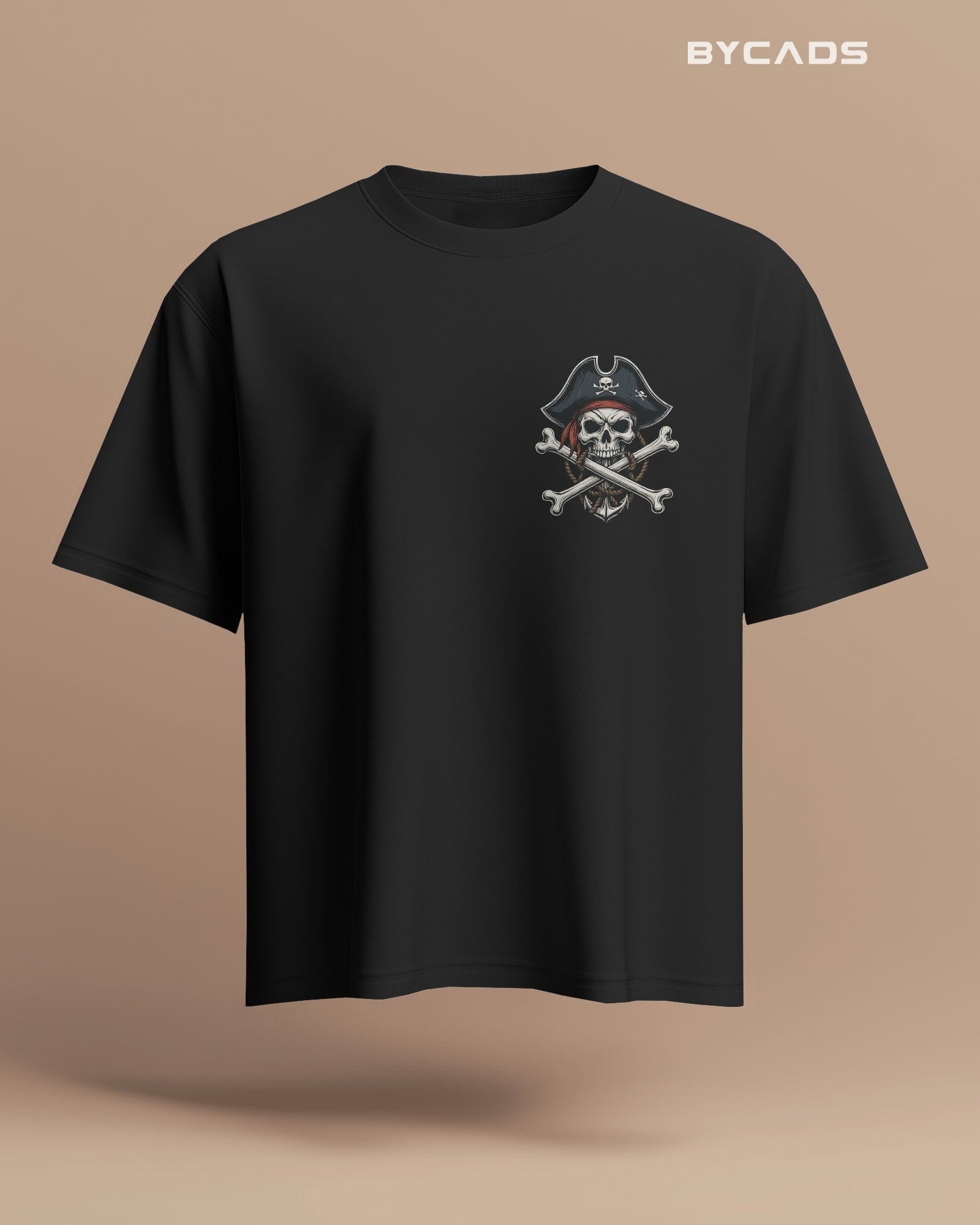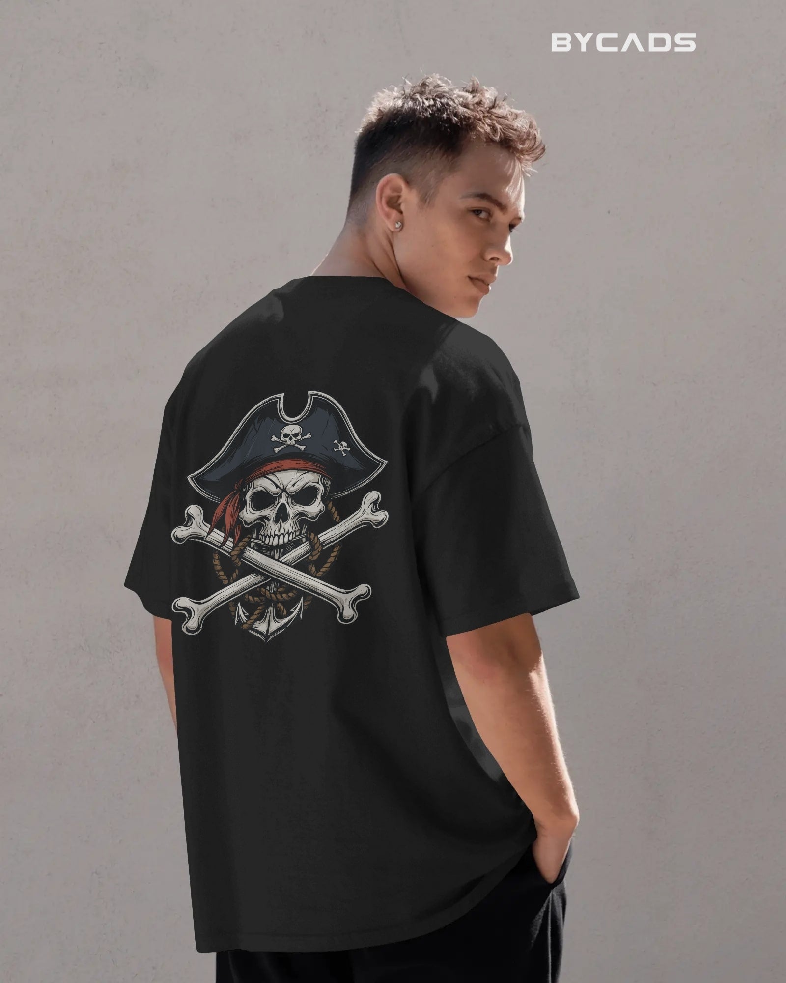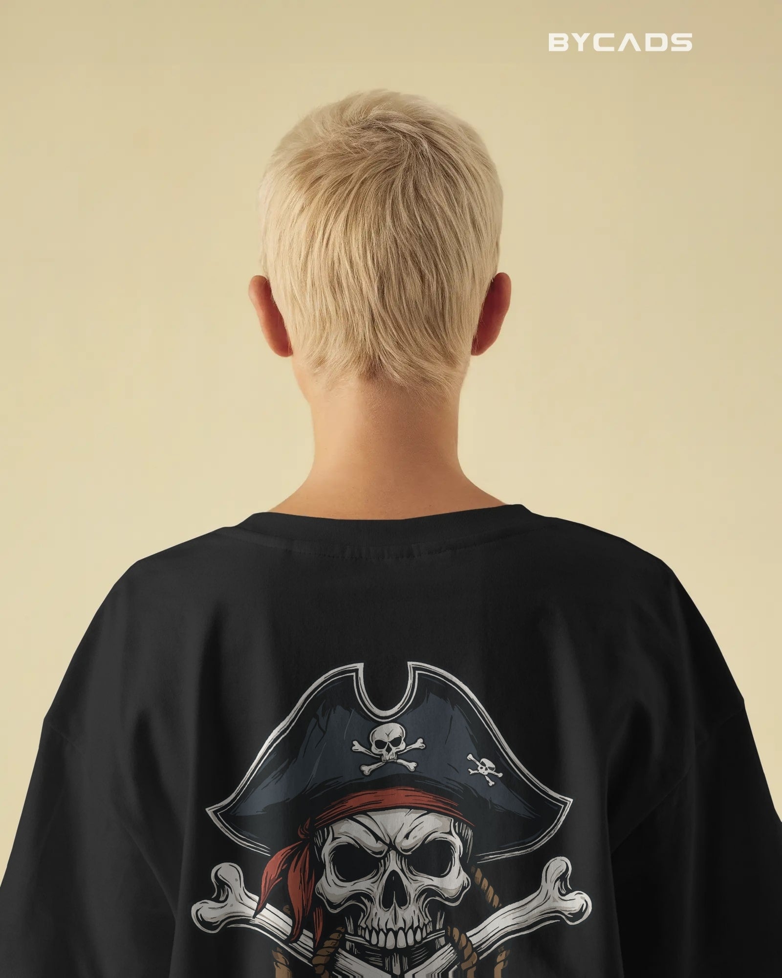 Rule the streets with this fierce Crossbones Pirate Tee by Bycads. Featuring a menacing skull in a pirate hat, framed by crossed bones and nautical rope, this oversized fit is made for those who sail against the current and fight with grit. A symbol of boldness, rebellion, and ruthless confidence.