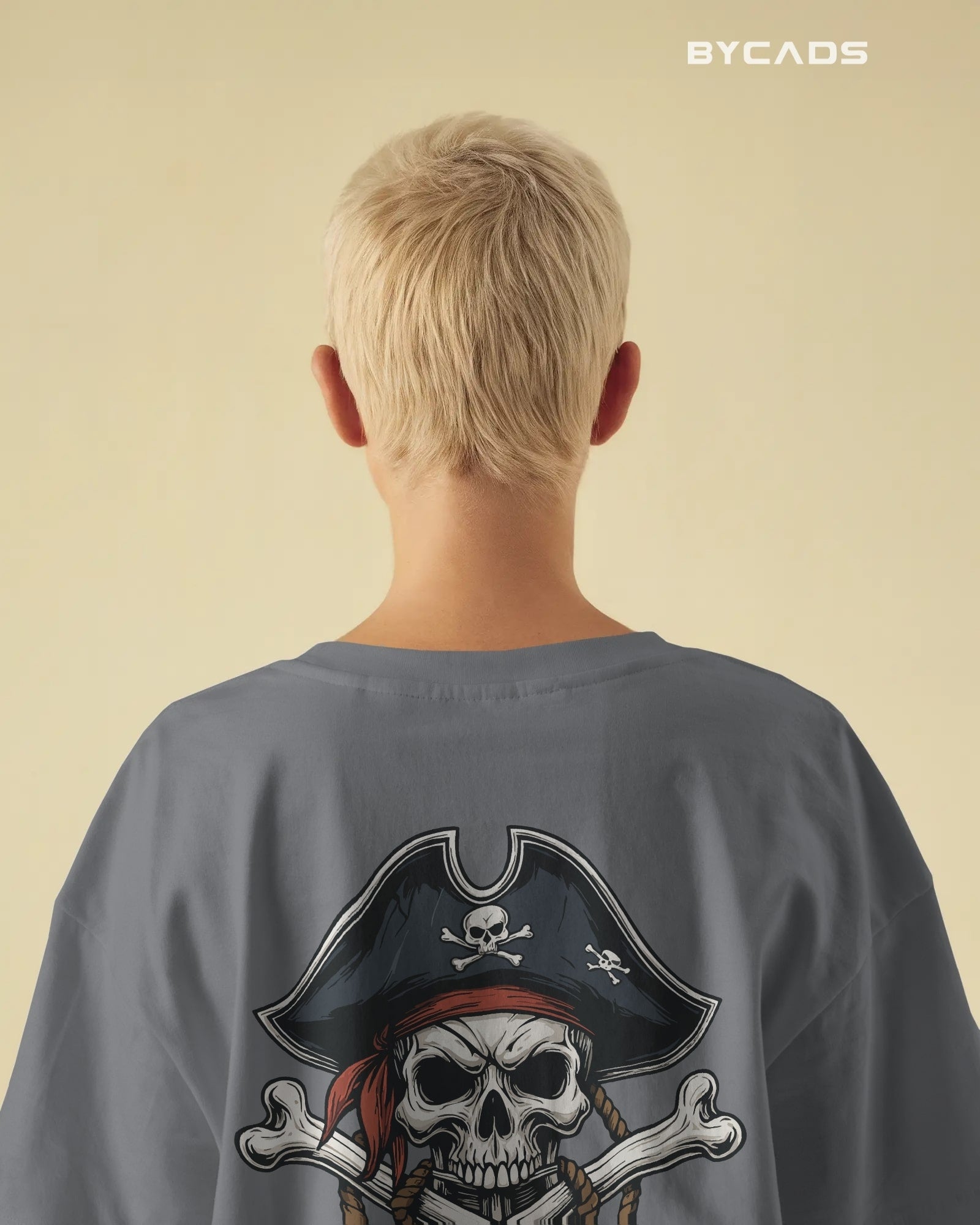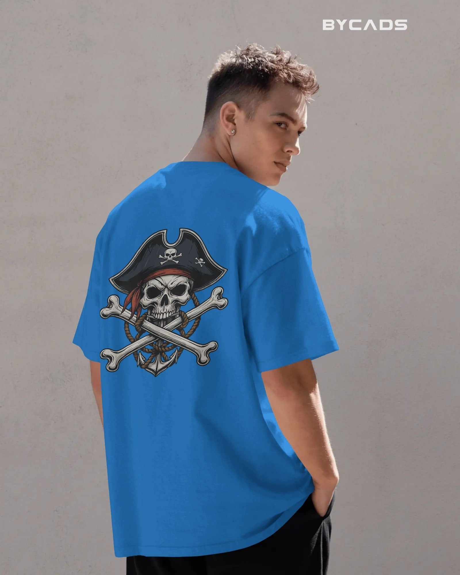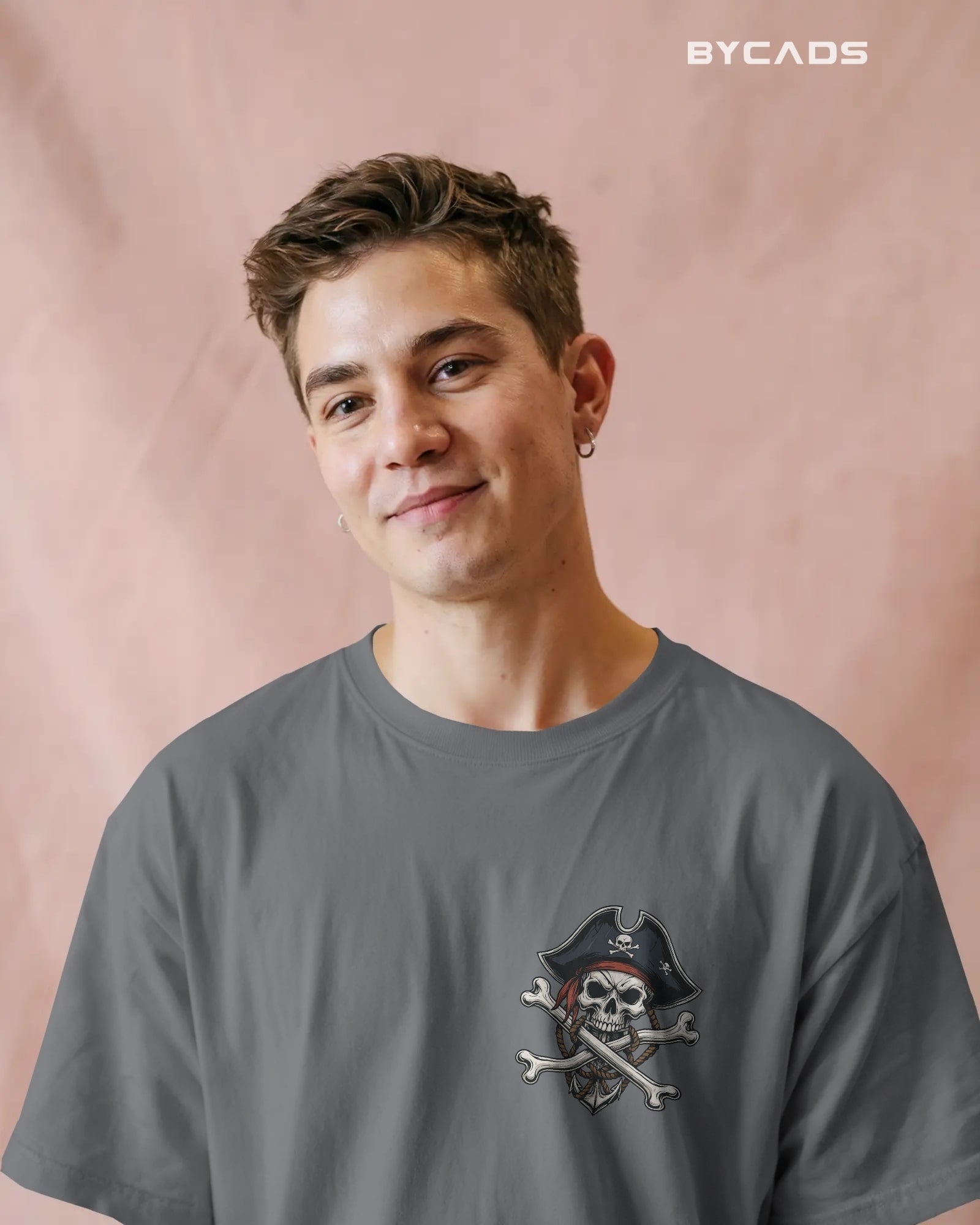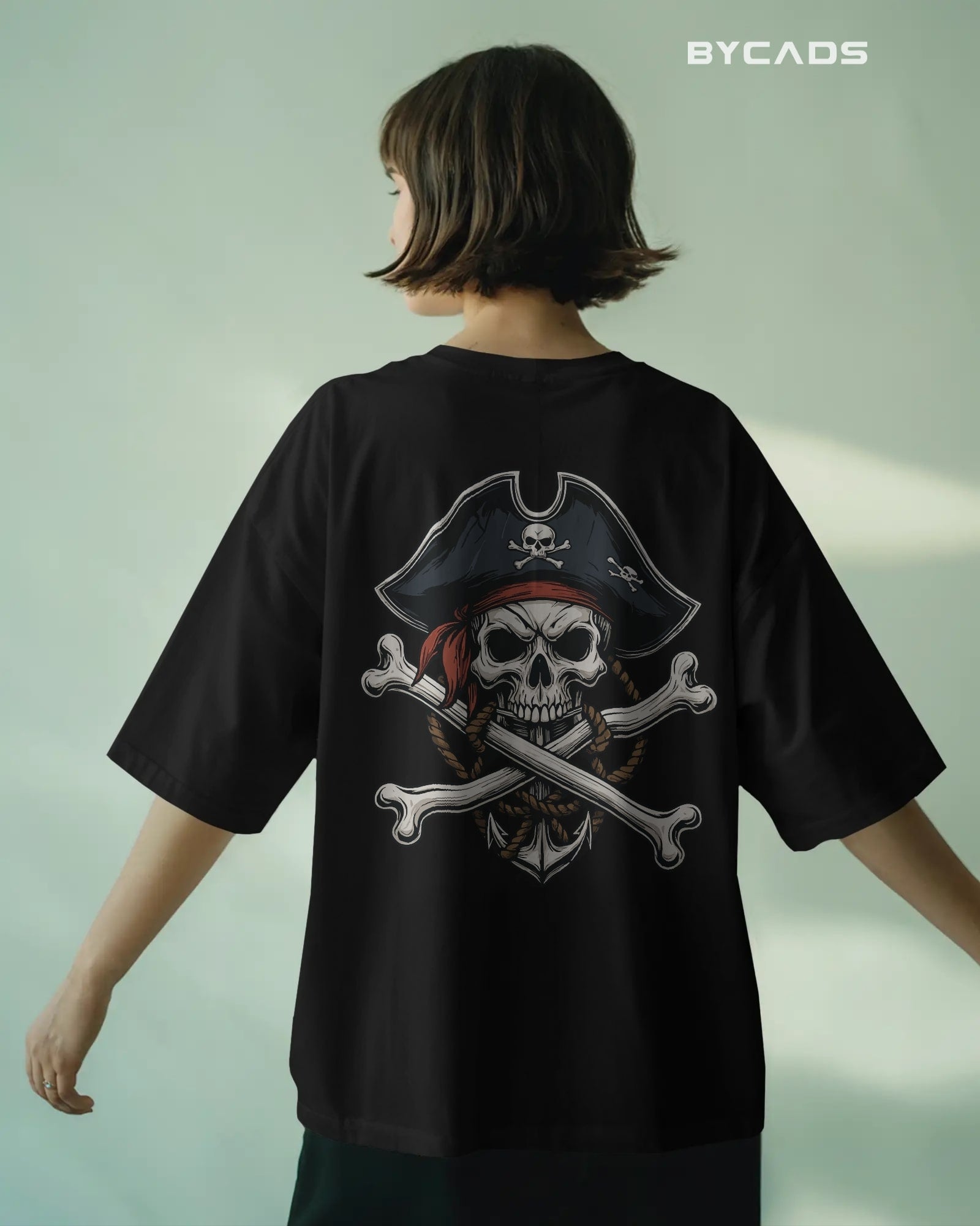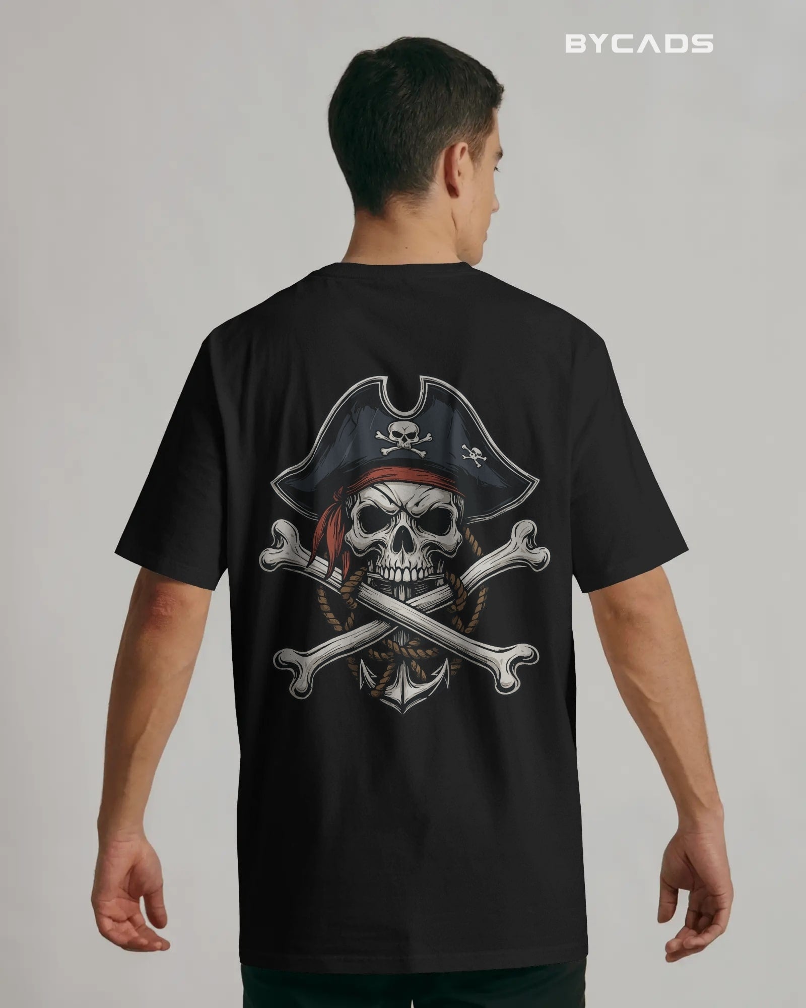 Rule the streets with this fierce Crossbones Pirate Tee by Bycads. Featuring a menacing skull in a pirate hat, framed by crossed bones and nautical rope, this oversized fit is made for those who sail against the current and fight with grit. A symbol of boldness, rebellion, and ruthless confidence.