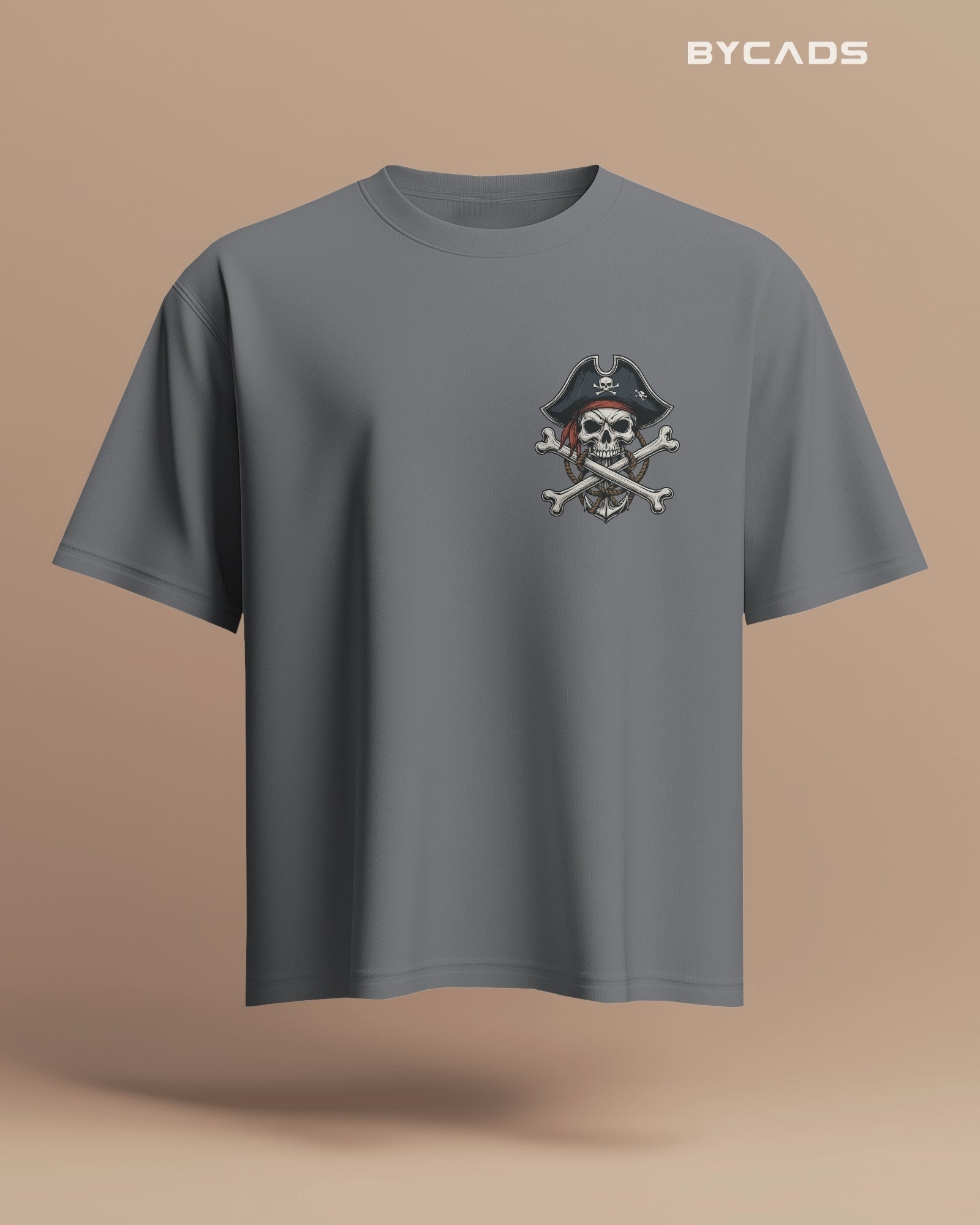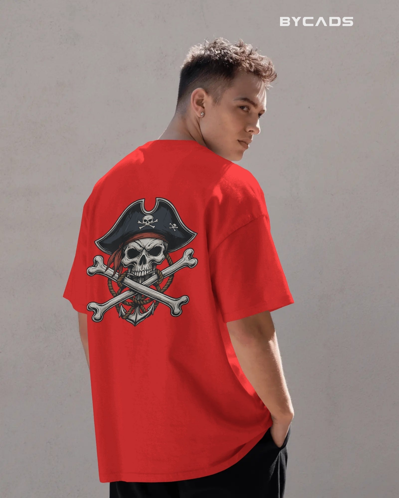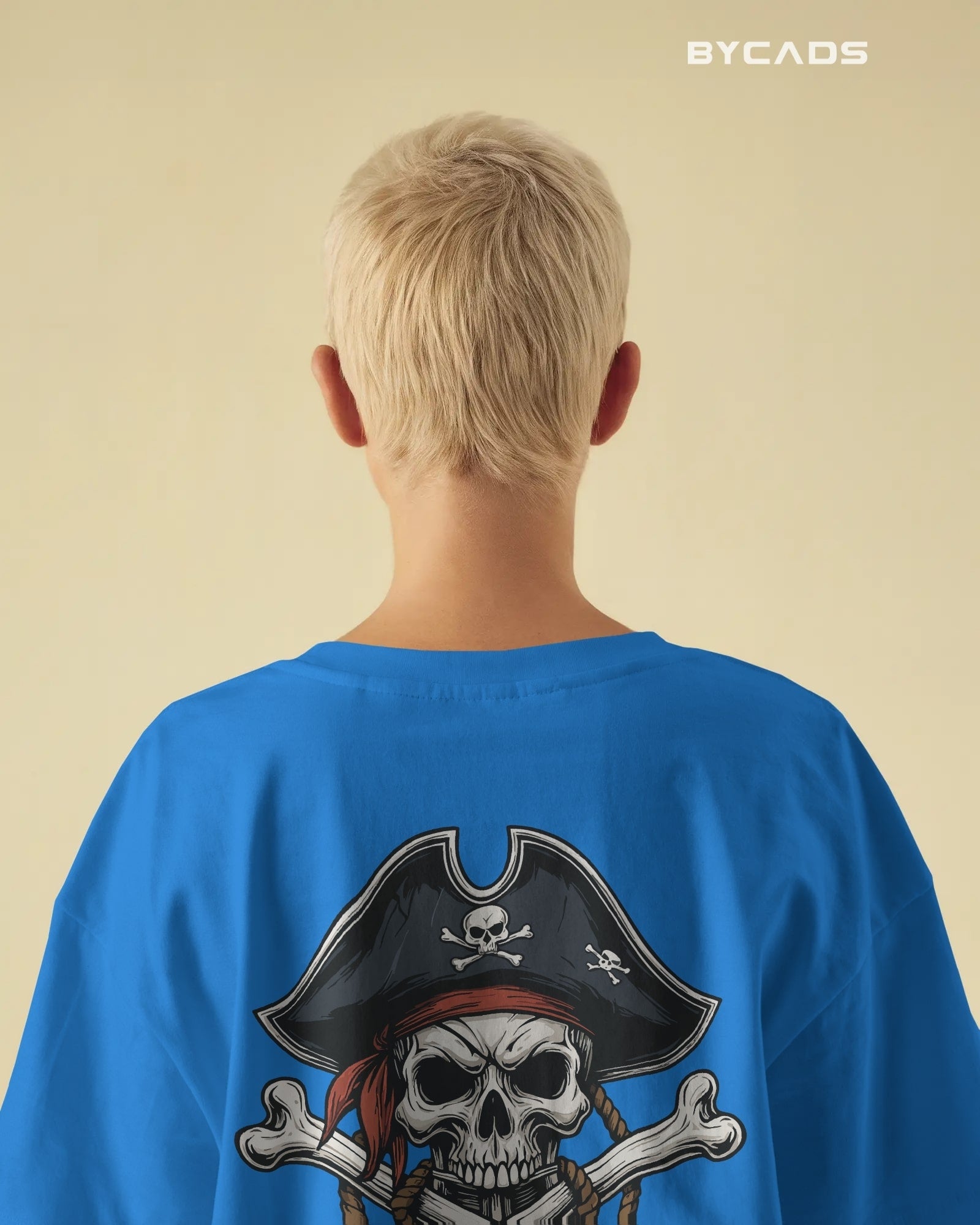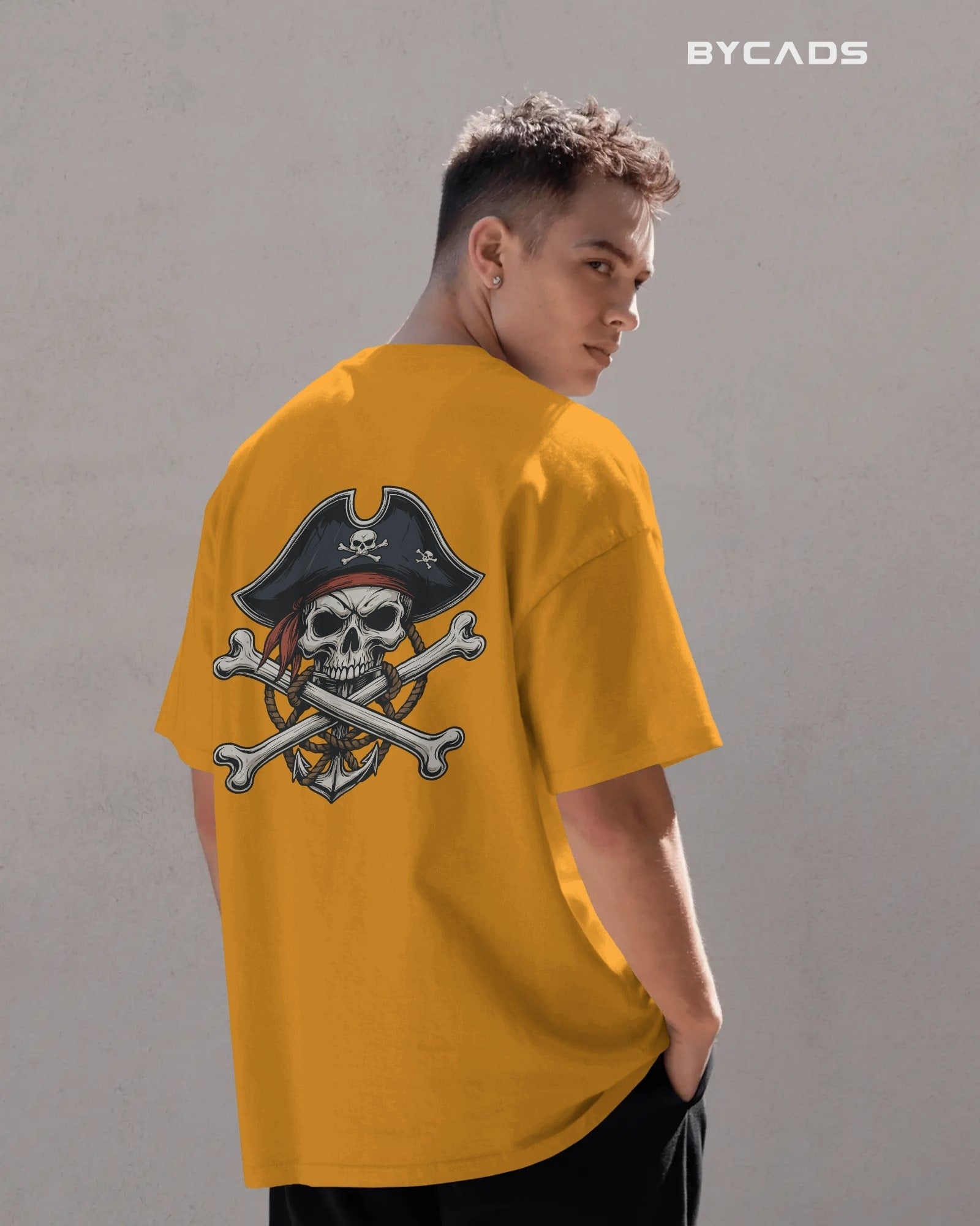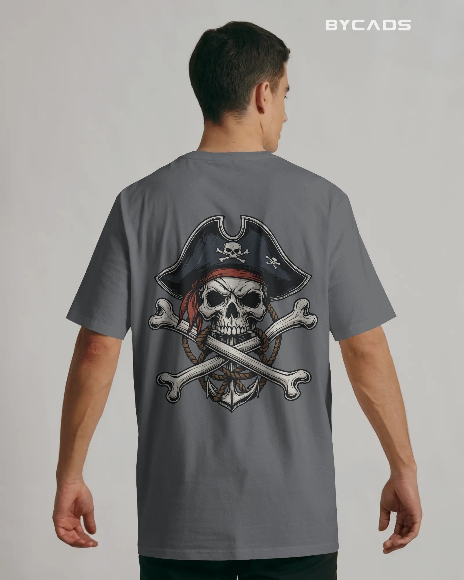 Rule the streets with this fierce Crossbones Pirate Tee by Bycads. Featuring a menacing skull in a pirate hat, framed by crossed bones and nautical rope, this oversized fit is made for those who sail against the current and fight with grit. A symbol of boldness, rebellion, and ruthless confidence.