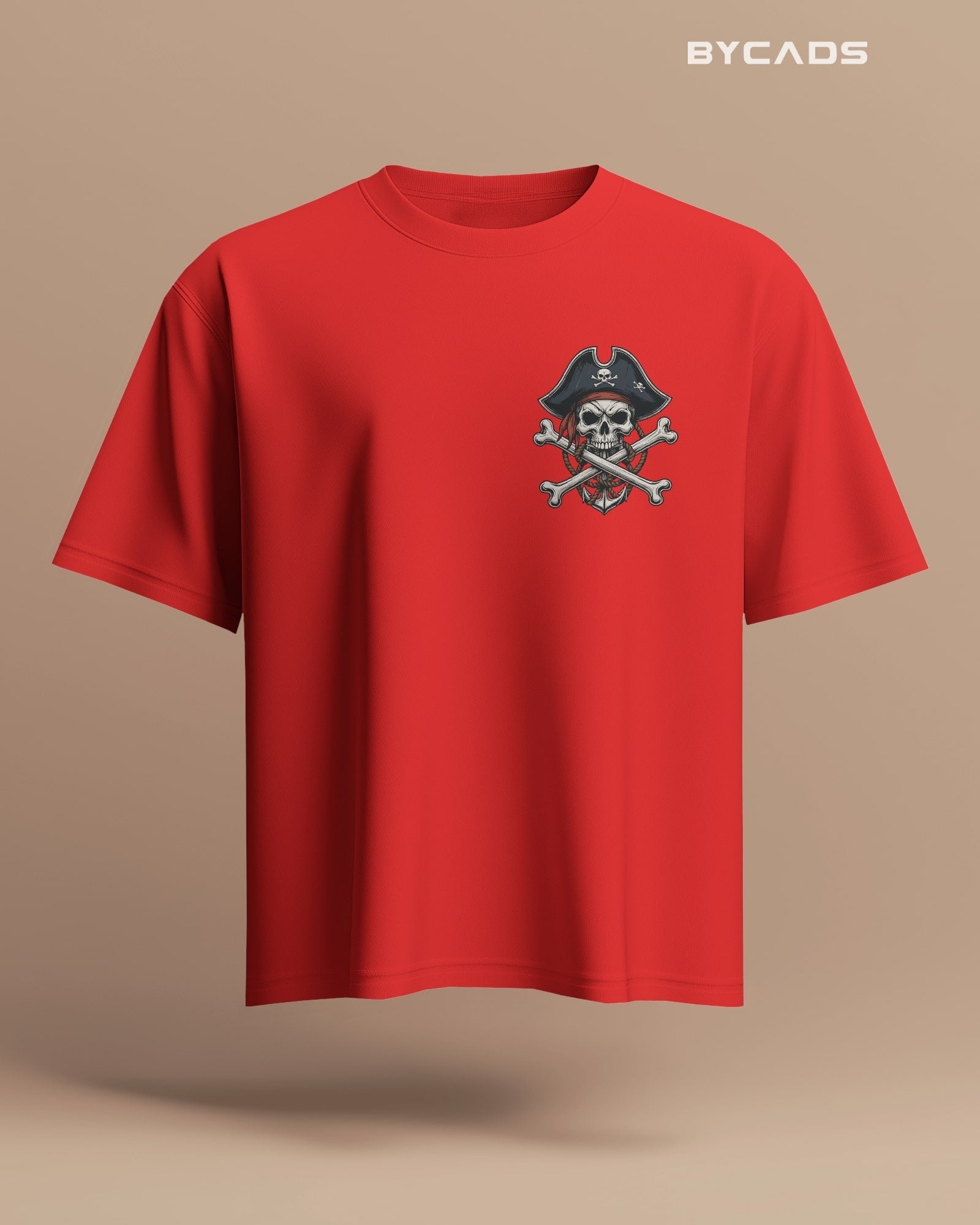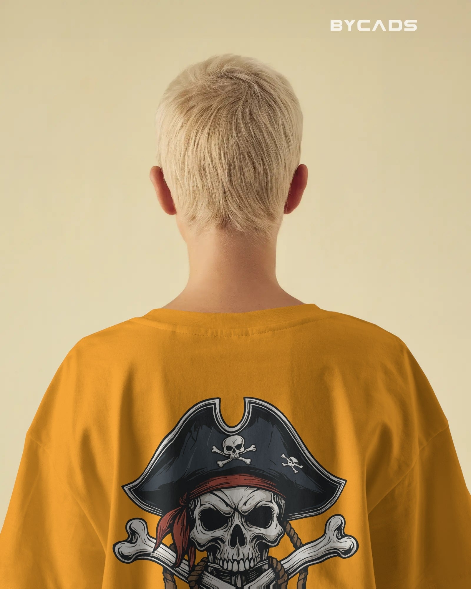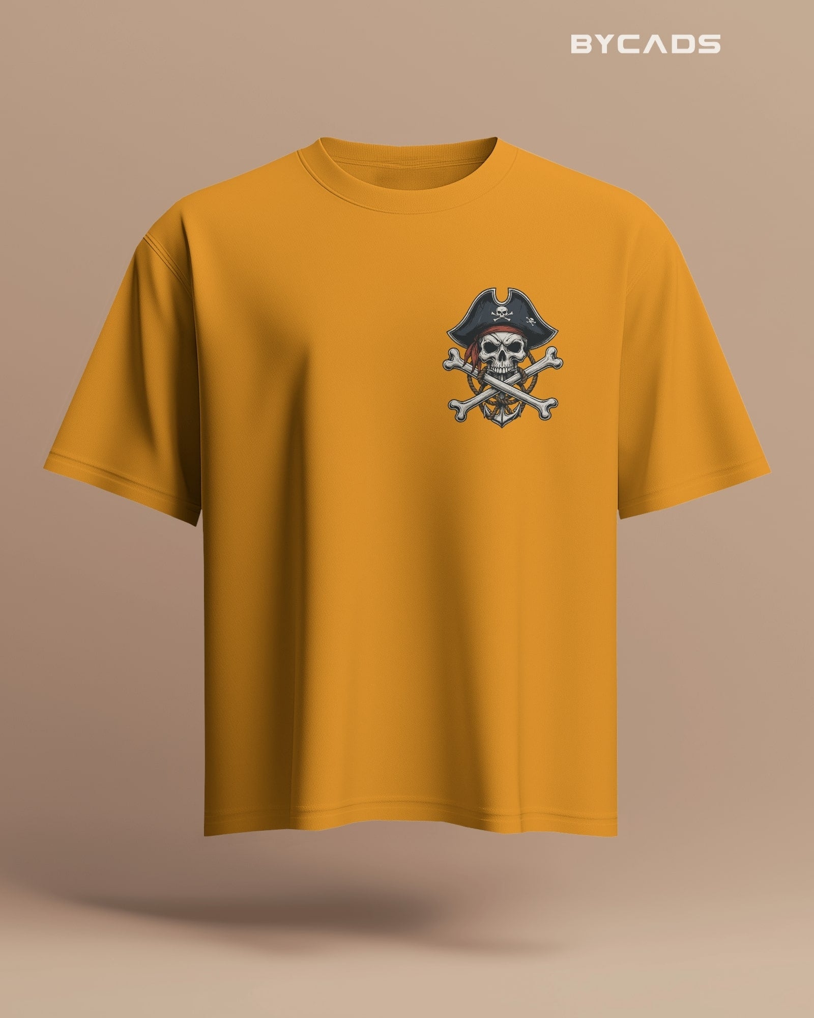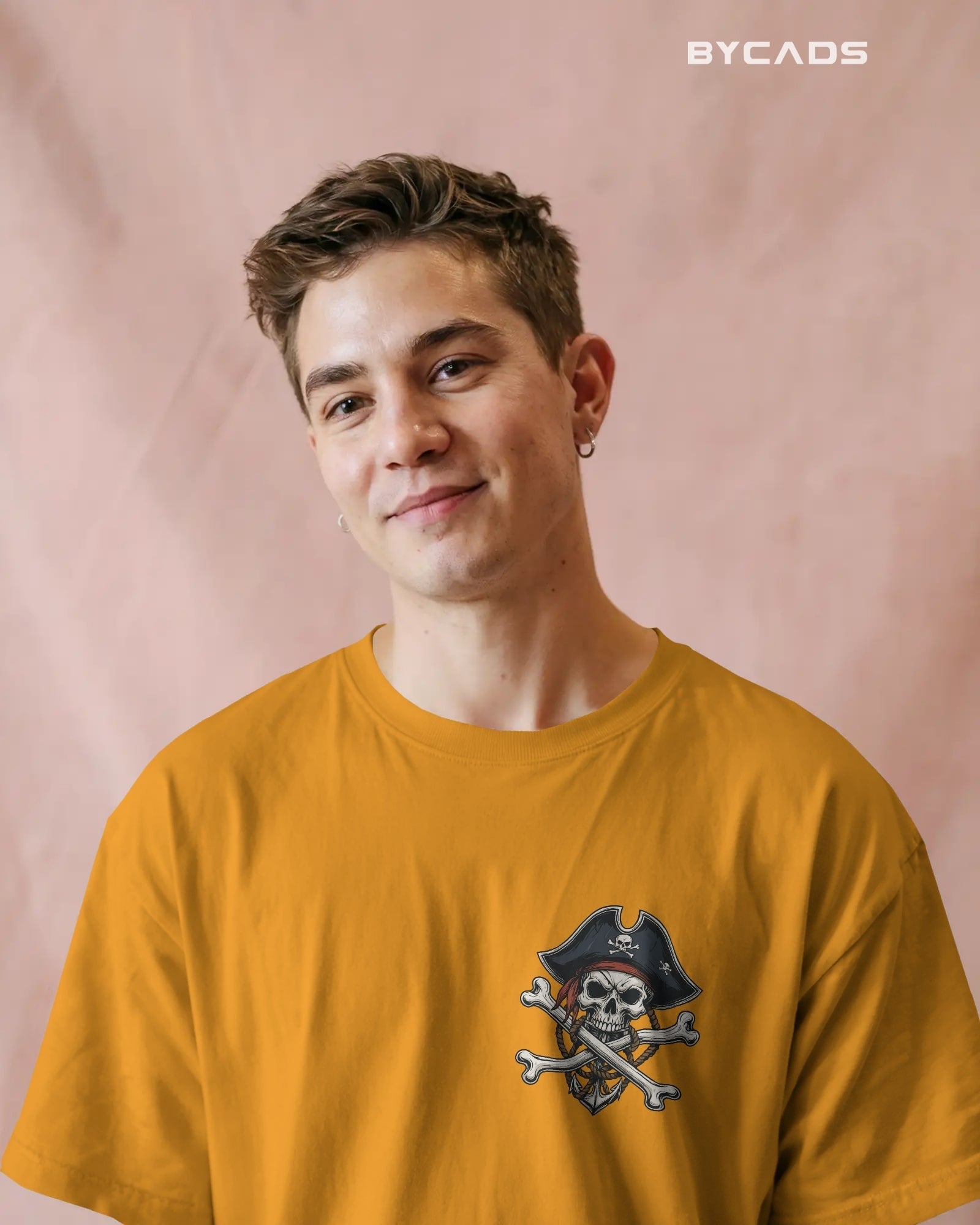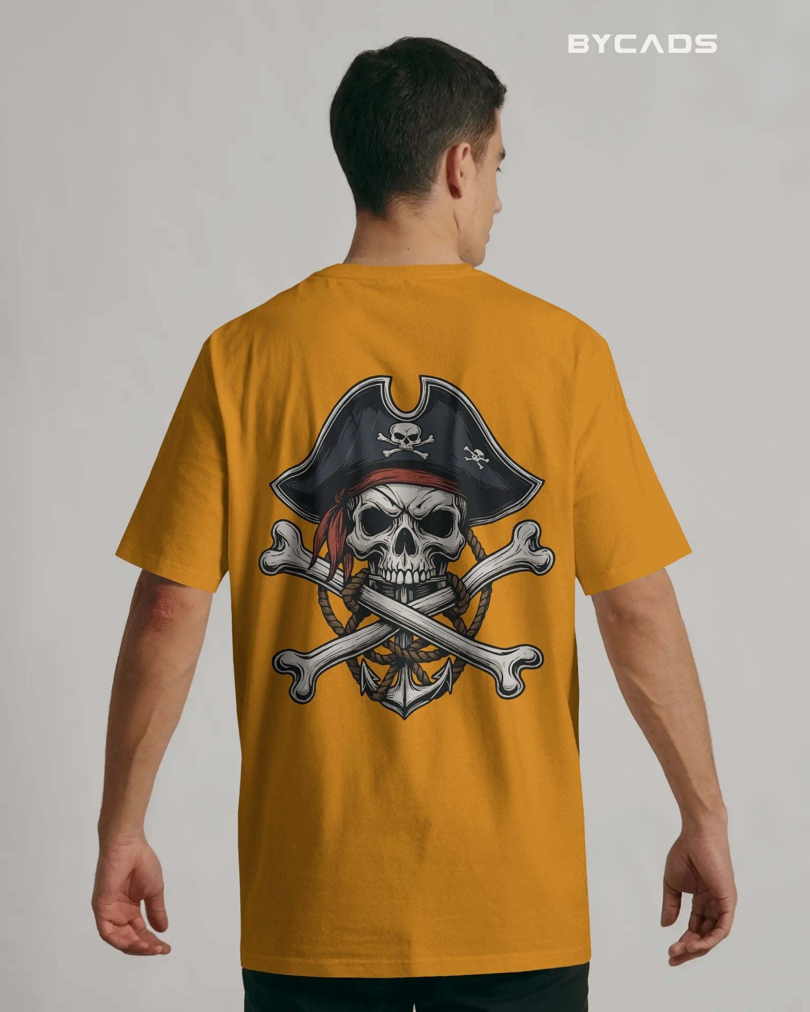 Rule the streets with this fierce Crossbones Pirate Tee by Bycads. Featuring a menacing skull in a pirate hat, framed by crossed bones and nautical rope, this oversized fit is made for those who sail against the current and fight with grit. A symbol of boldness, rebellion, and ruthless confidence.