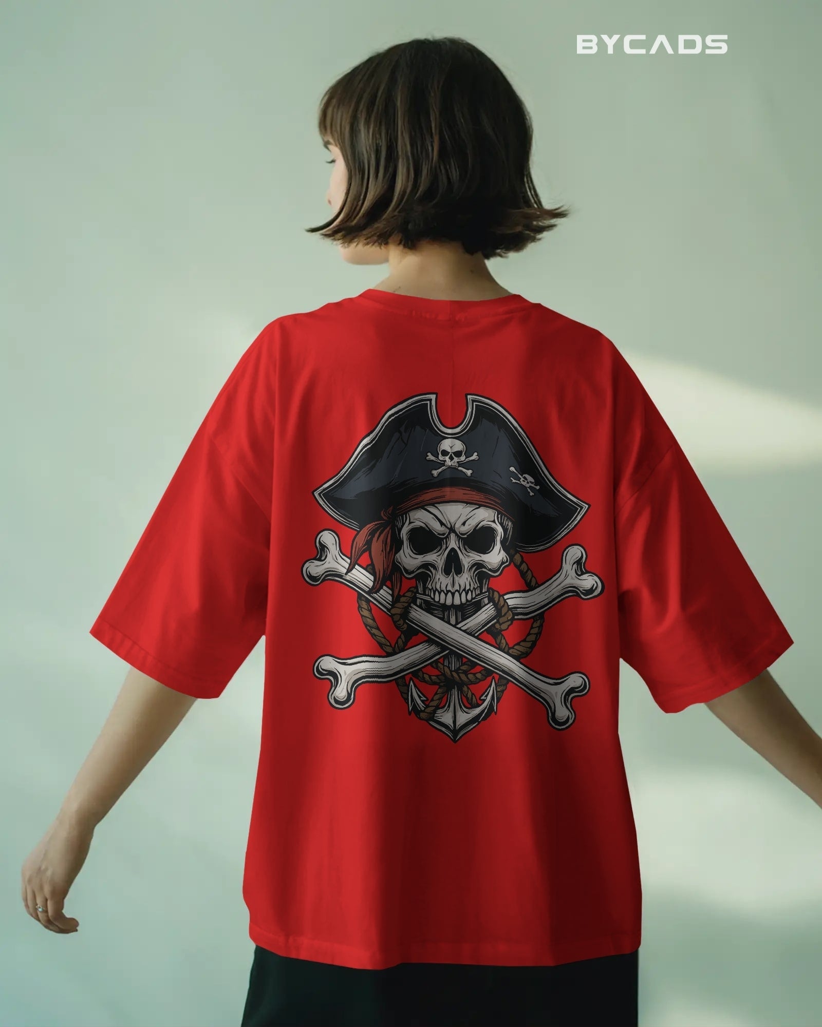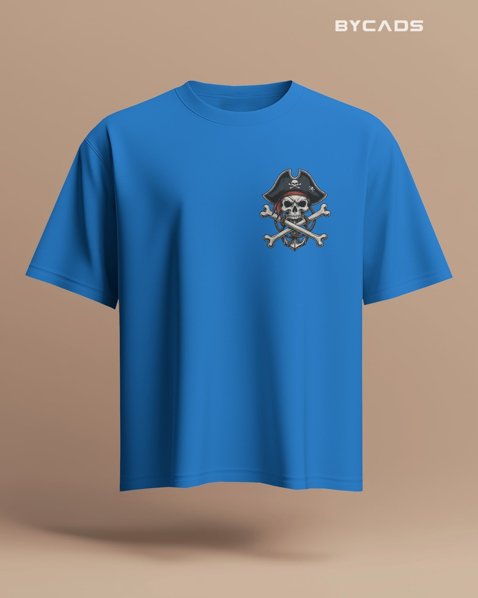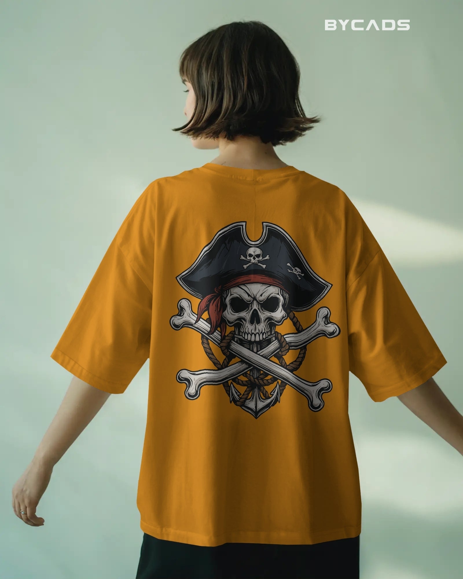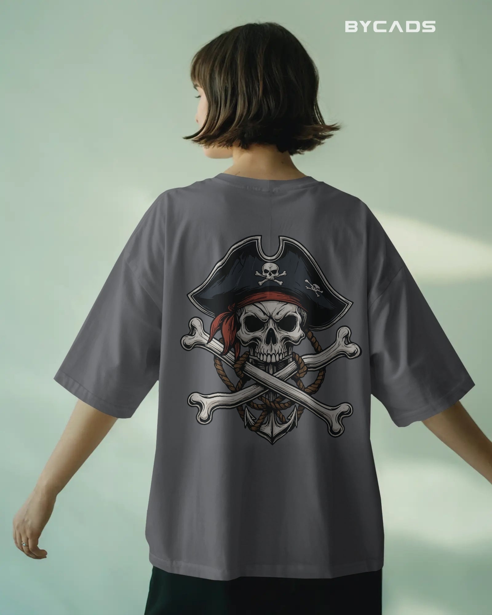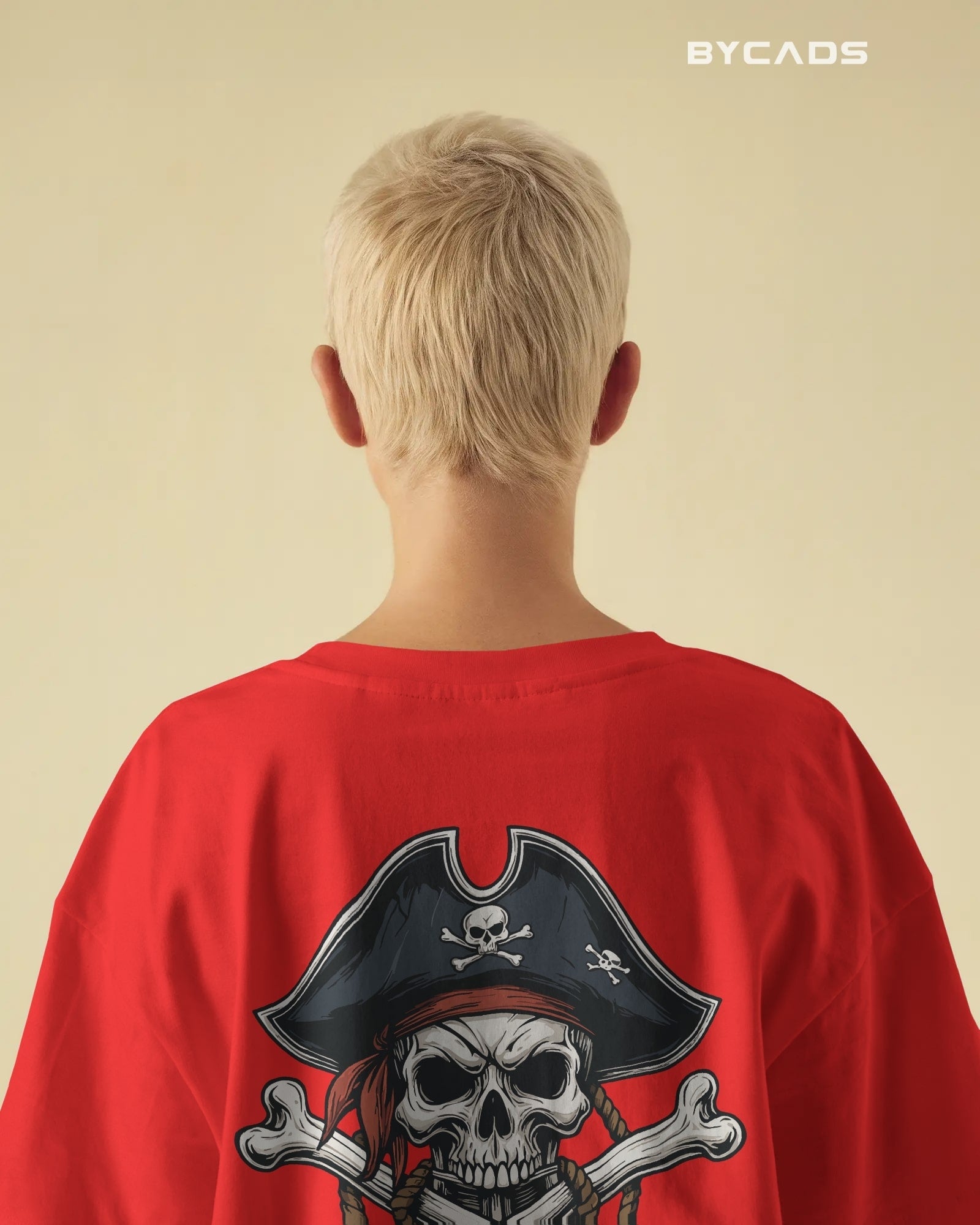 Rule the streets with this fierce Crossbones Pirate Tee by Bycads. Featuring a menacing skull in a pirate hat, framed by crossed bones and nautical rope, this oversized fit is made for those who sail against the current and fight with grit. A symbol of boldness, rebellion, and ruthless confidence.