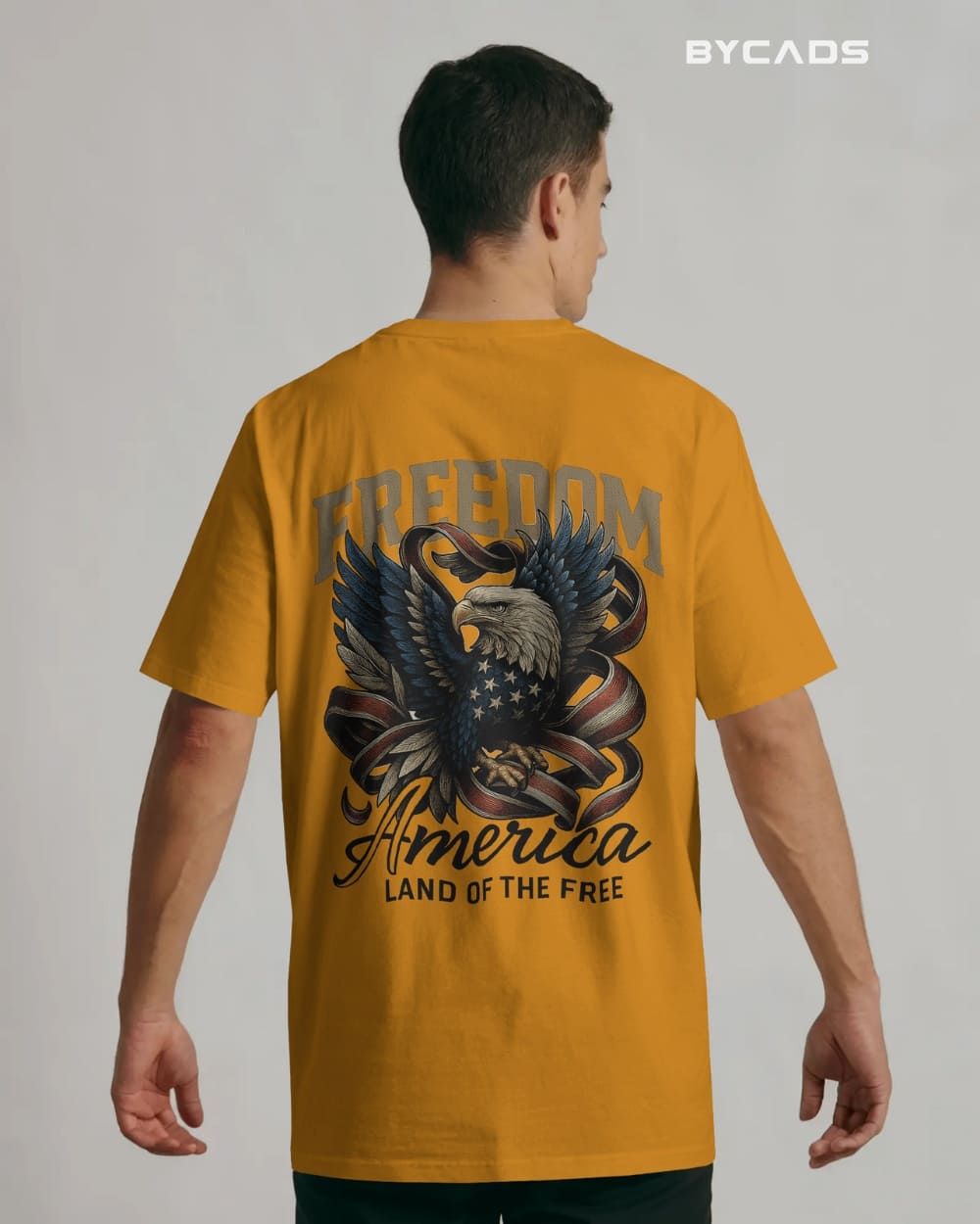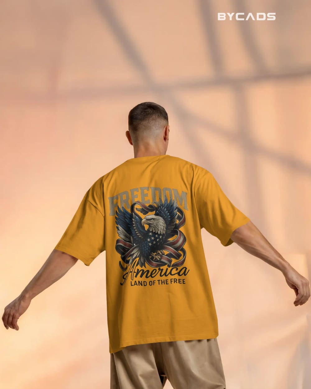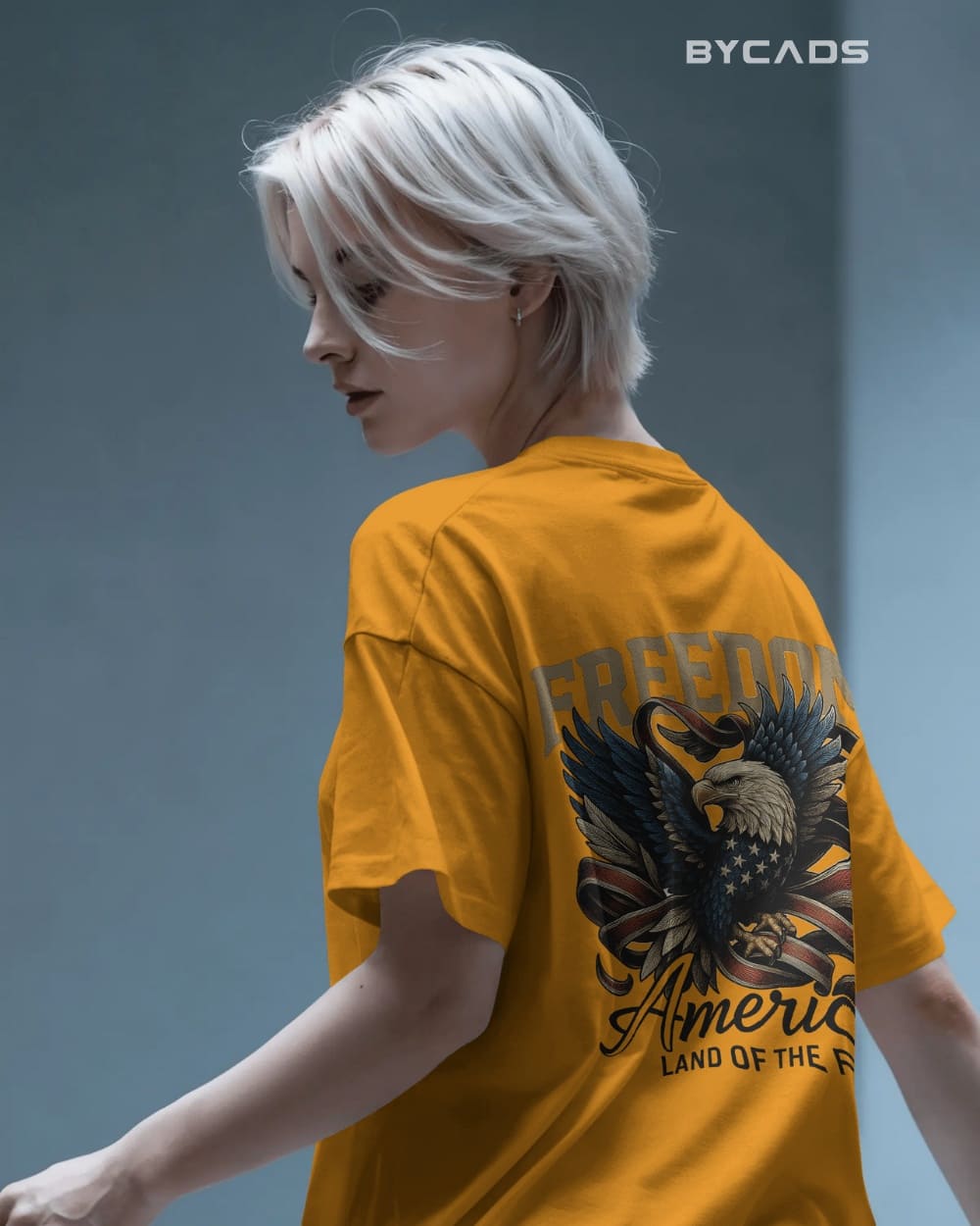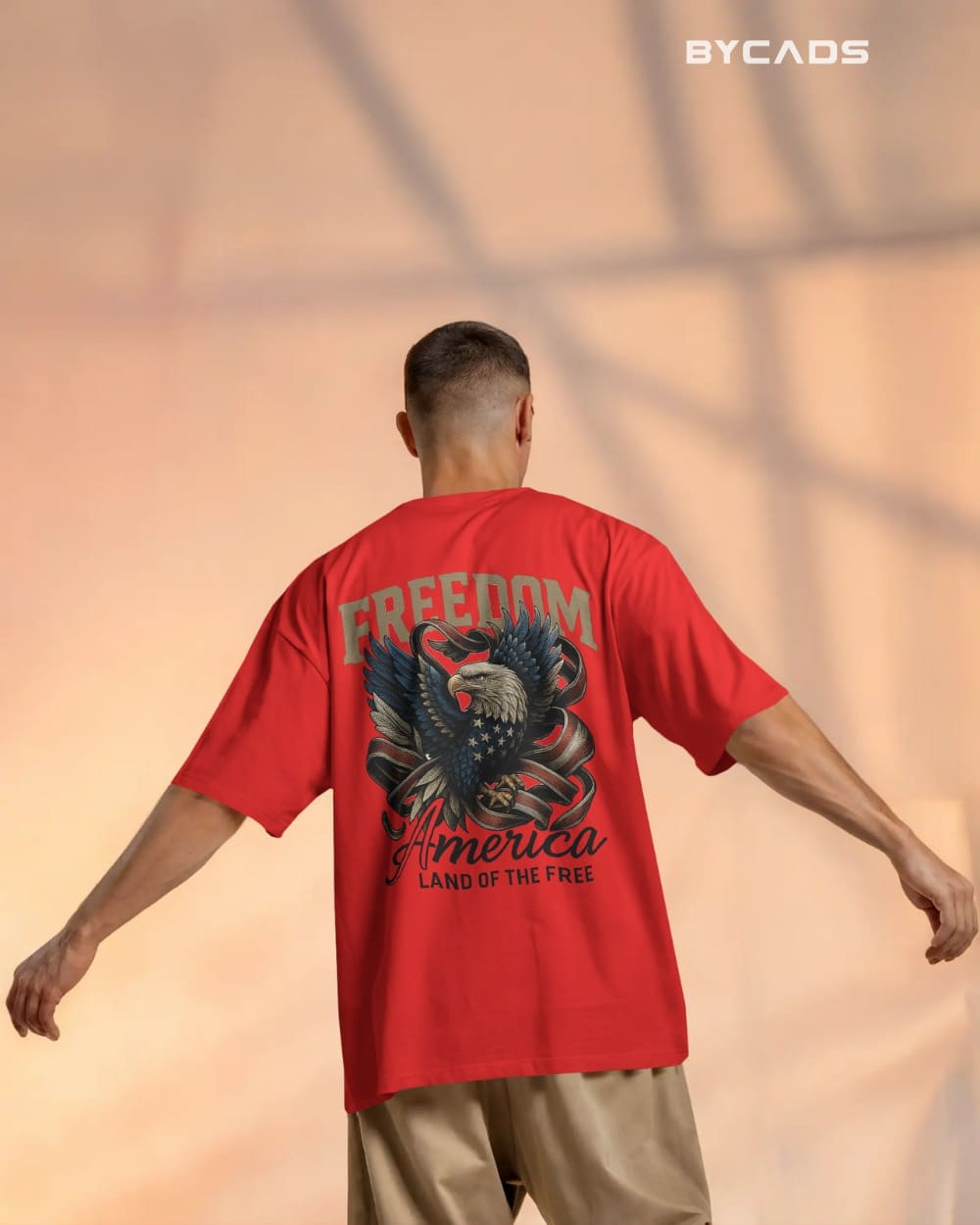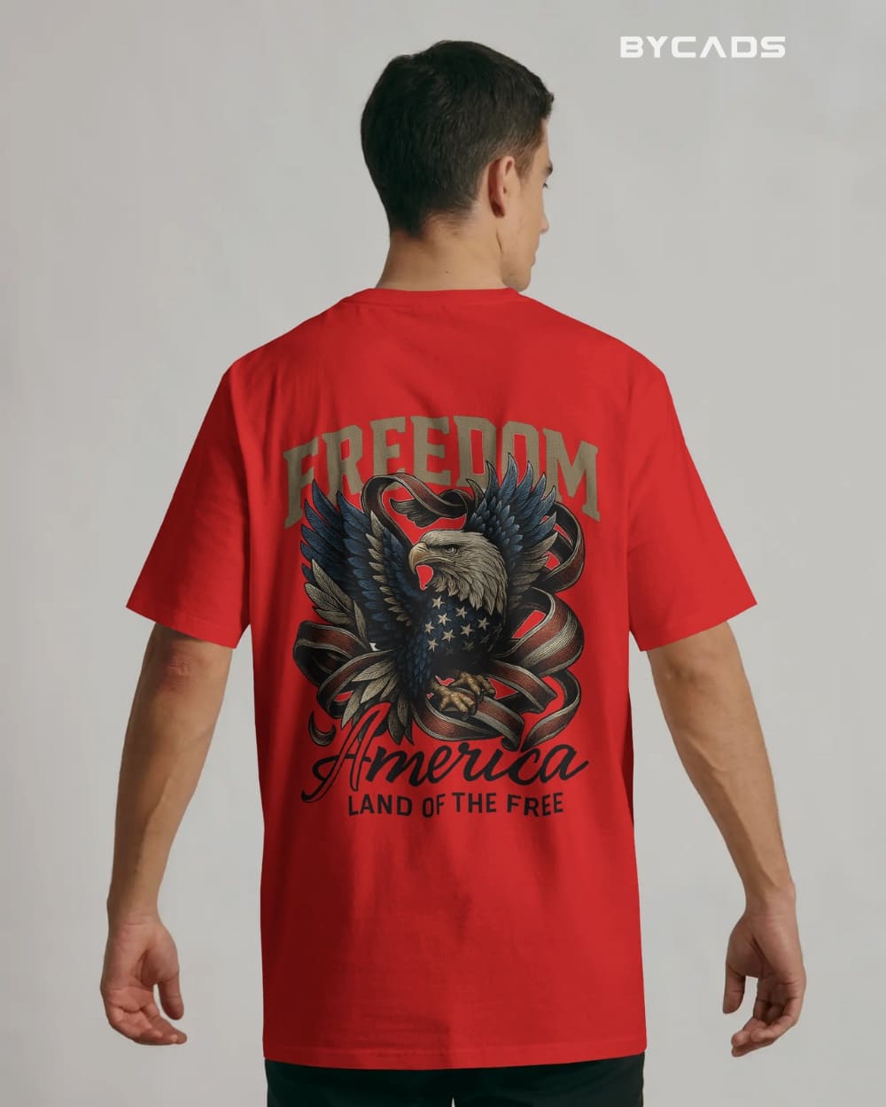 Embrace bold patriotism and fearless spirit with the Freedom Eagle Oversized T-Shirt by Bycads. Featuring a detailed bald eagle wrapped in an American flag motif beneath the powerful word FREEDOM, this tee is a tribute to strength, pride, and unshakable individuality.