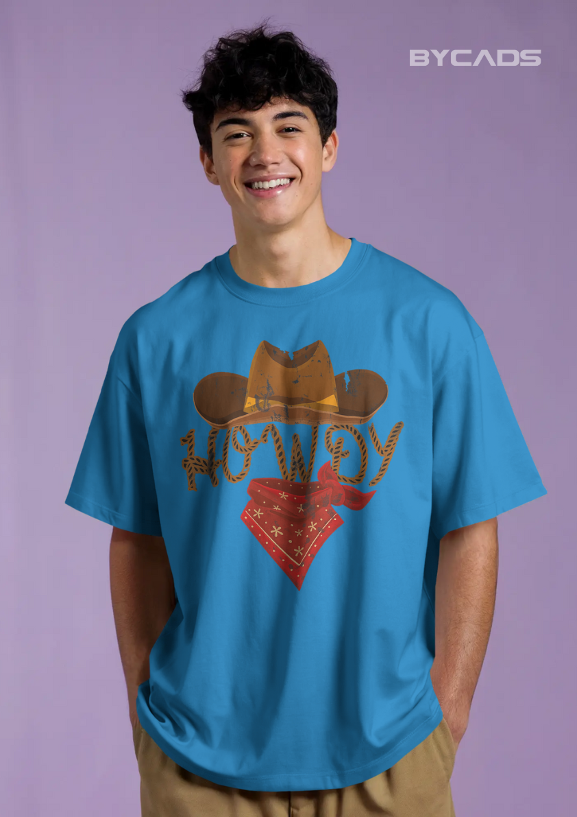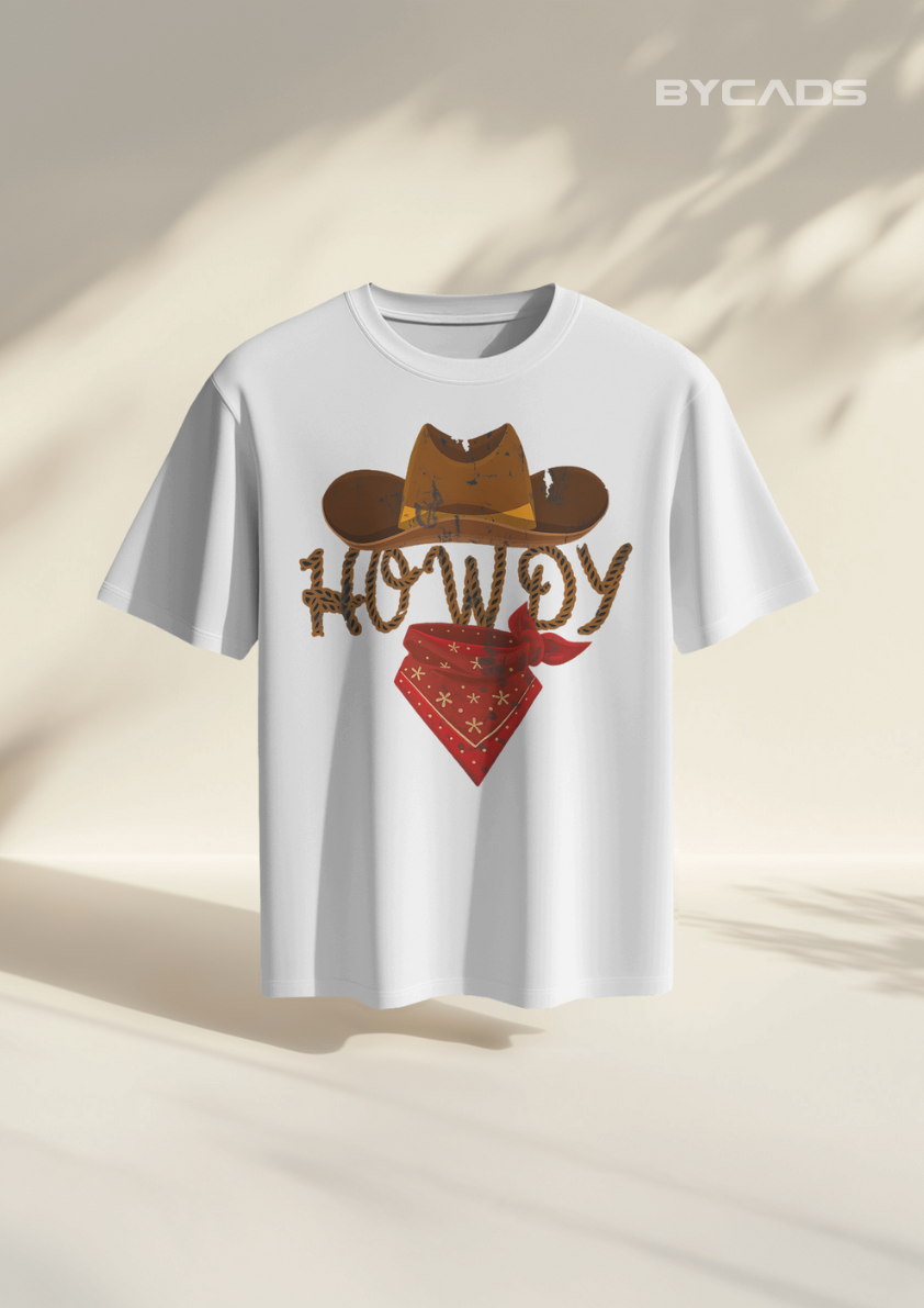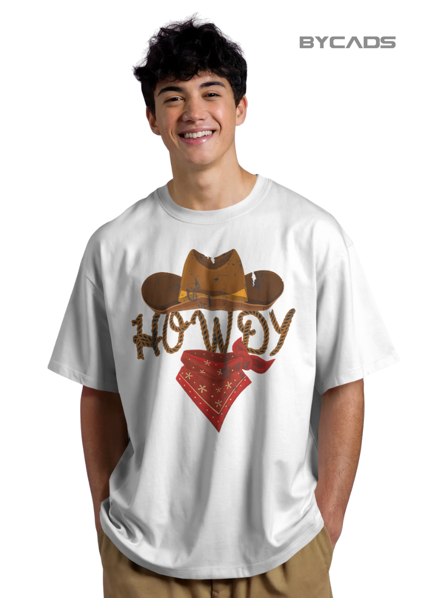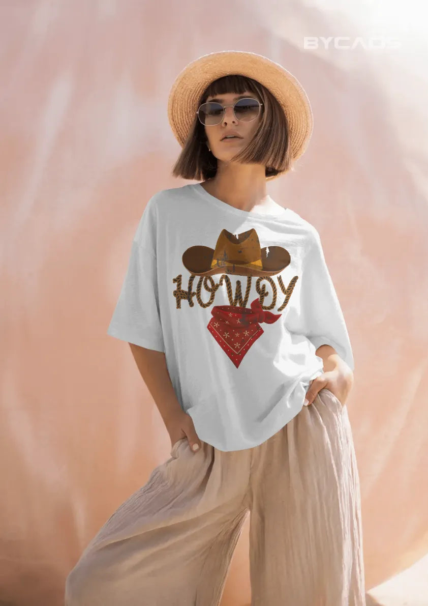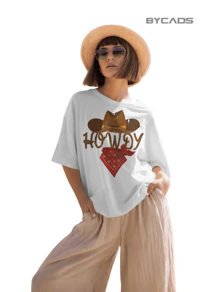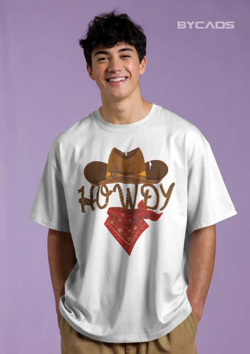 Make your entrance loud and proud with the Howdy Cowboy Oversized T-Shirt from Bycads. This design channels classic Western energy into a minimalist yet bold graphic — a cowboy hat perched above a red bandana, with “HOWDY” stamped across the back in rustic lettering. It’s the kind of tee that mixes frontier confidence with everyday wearability, perfect for anyone who moves to their own rhythm.
