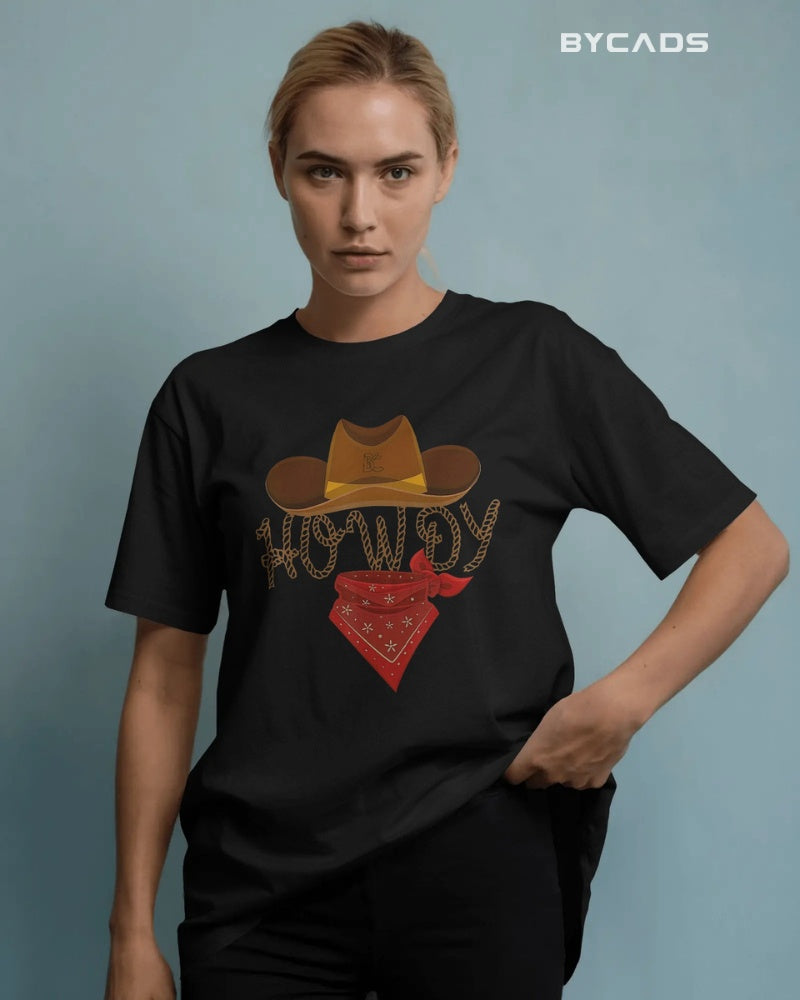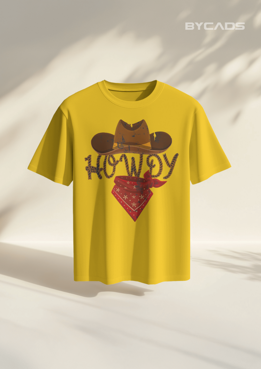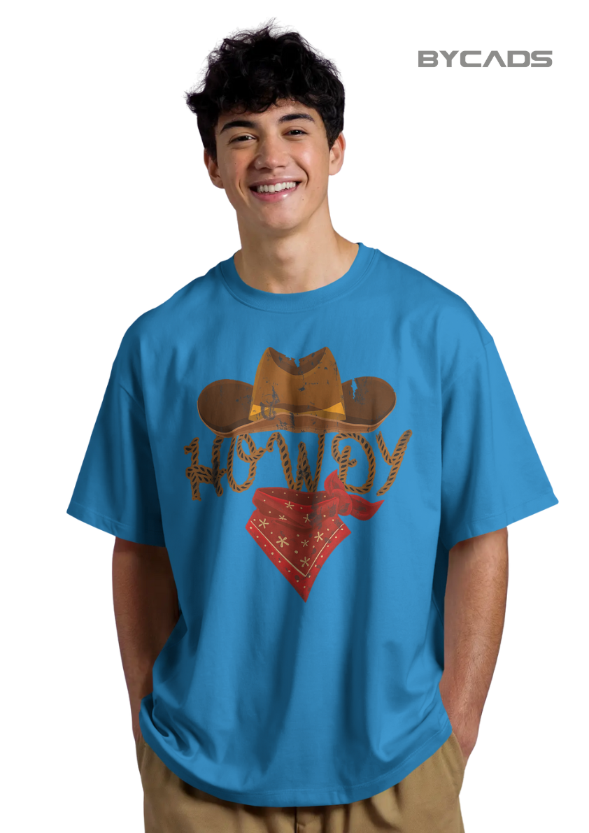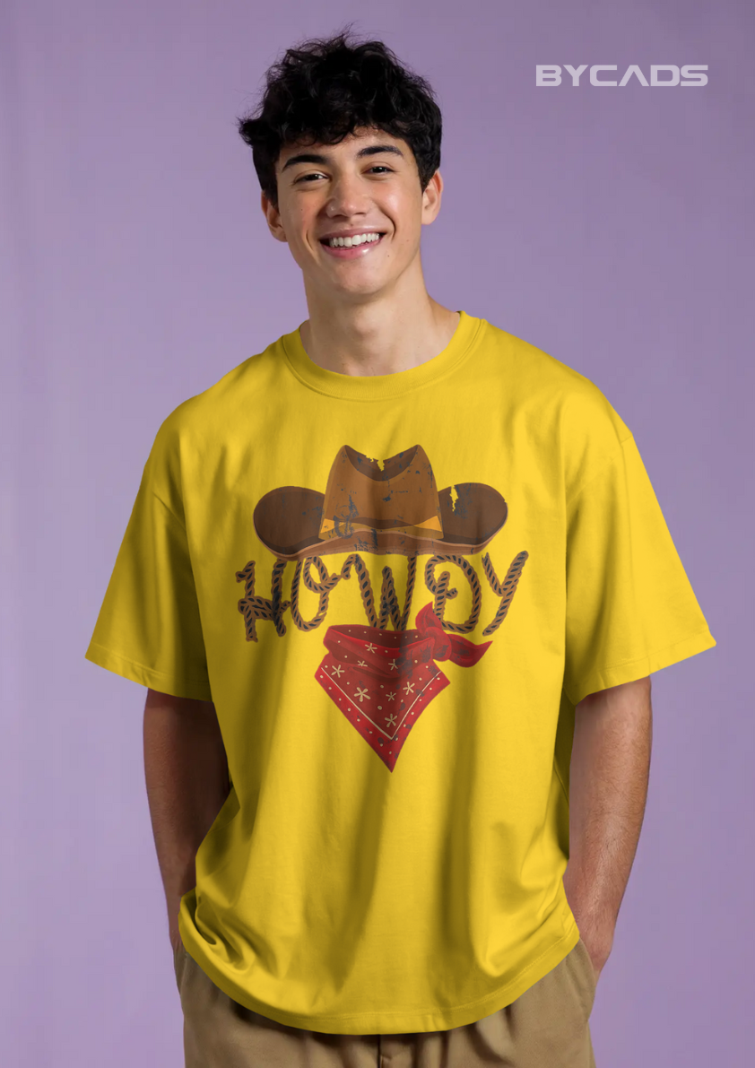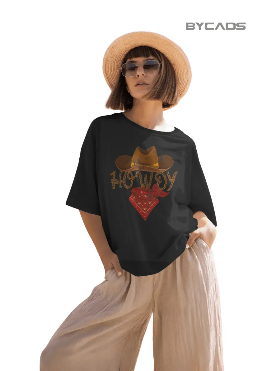 Make your entrance loud and proud with the Howdy Cowboy Oversized T-Shirt from Bycads. This design channels classic Western energy into a minimalist yet bold graphic — a cowboy hat perched above a red bandana, with “HOWDY” stamped across the back in rustic lettering. It’s the kind of tee that mixes frontier confidence with everyday wearability, perfect for anyone who moves to their own rhythm.