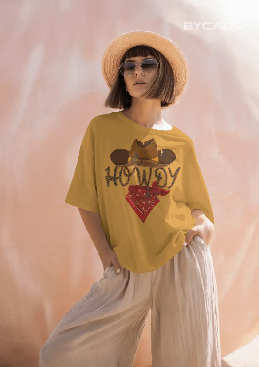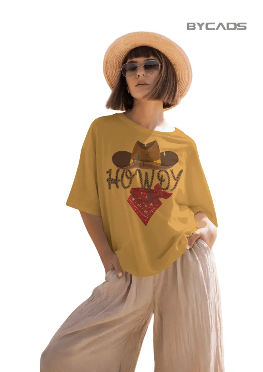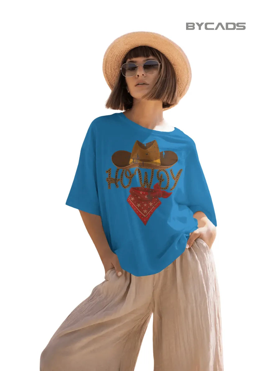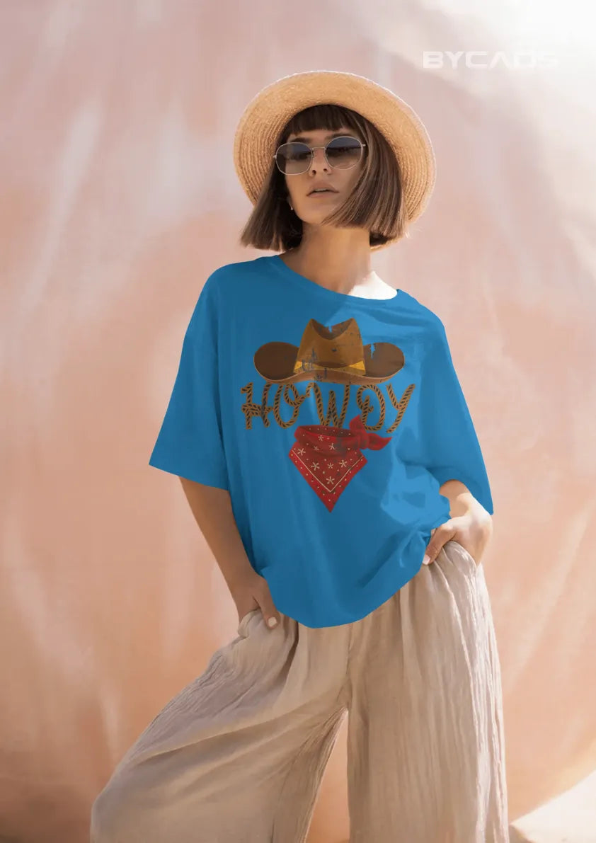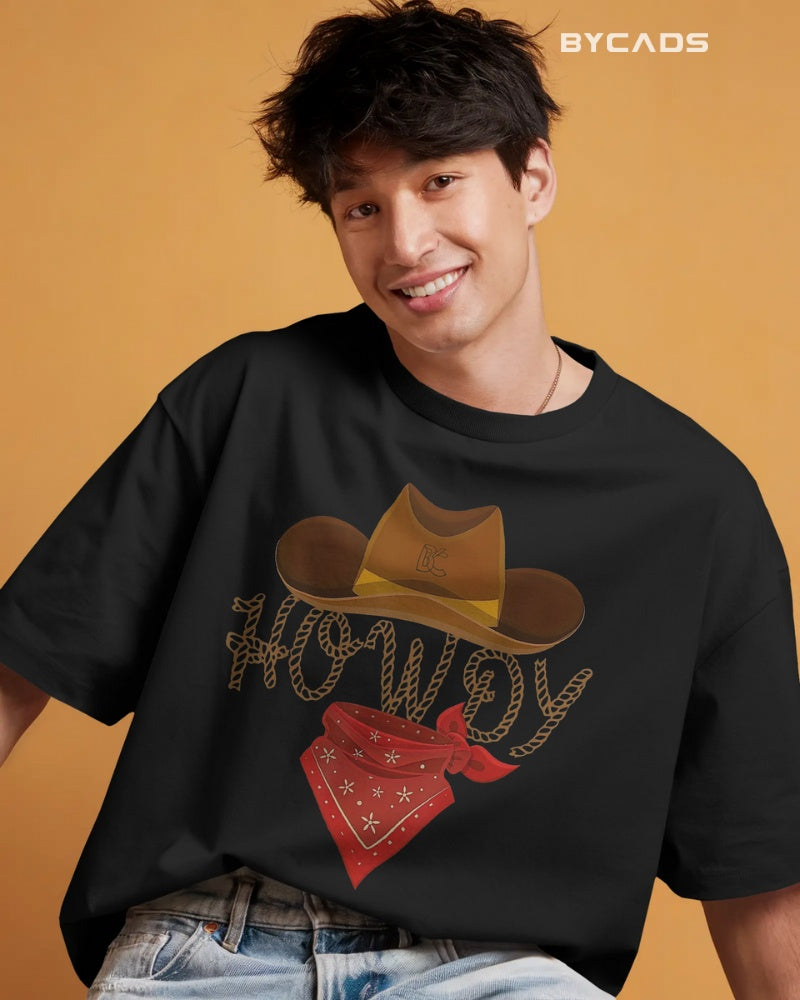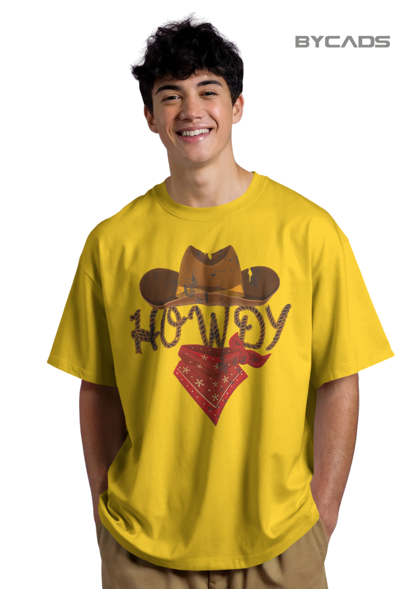 Make your entrance loud and proud with the Howdy Cowboy Oversized T-Shirt from Bycads. This design channels classic Western energy into a minimalist yet bold graphic — a cowboy hat perched above a red bandana, with “HOWDY” stamped across the back in rustic lettering. It’s the kind of tee that mixes frontier confidence with everyday wearability, perfect for anyone who moves to their own rhythm.