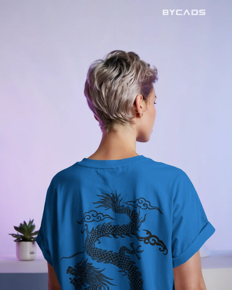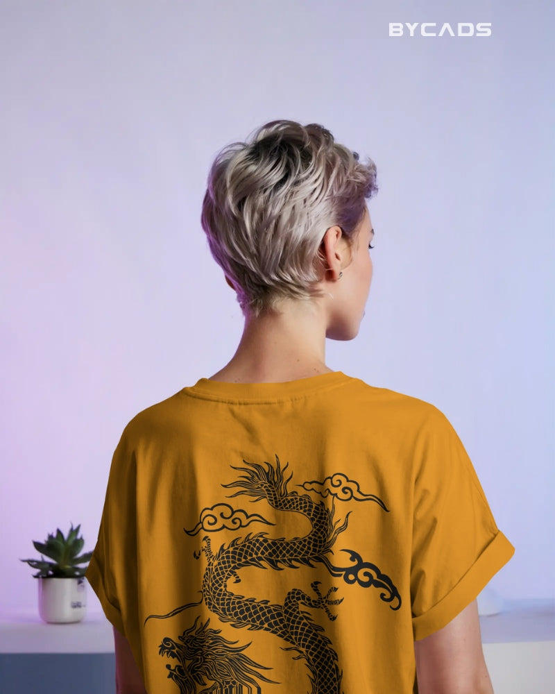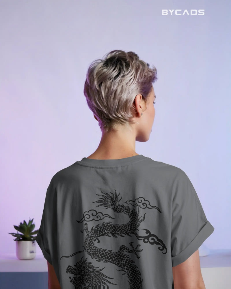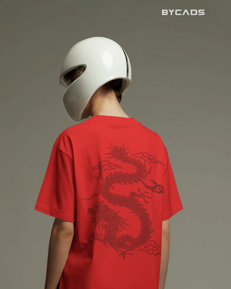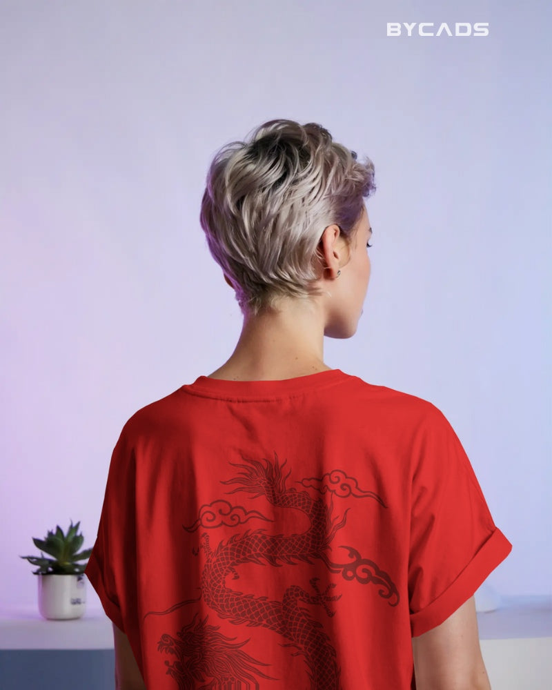 Inspired by Eastern mythology and streetwear aesthetics, this oversized black t-shirt features a fierce red dragon curling across the back. Representing strength, luck, and mastery, the detailed artwork makes a bold statement without saying a word. The premium fabric offers a smooth, breathable feel, while the relaxed fit lets you conquer your day in style. A must-have for fashion warriors and cultural trendsetters alike.