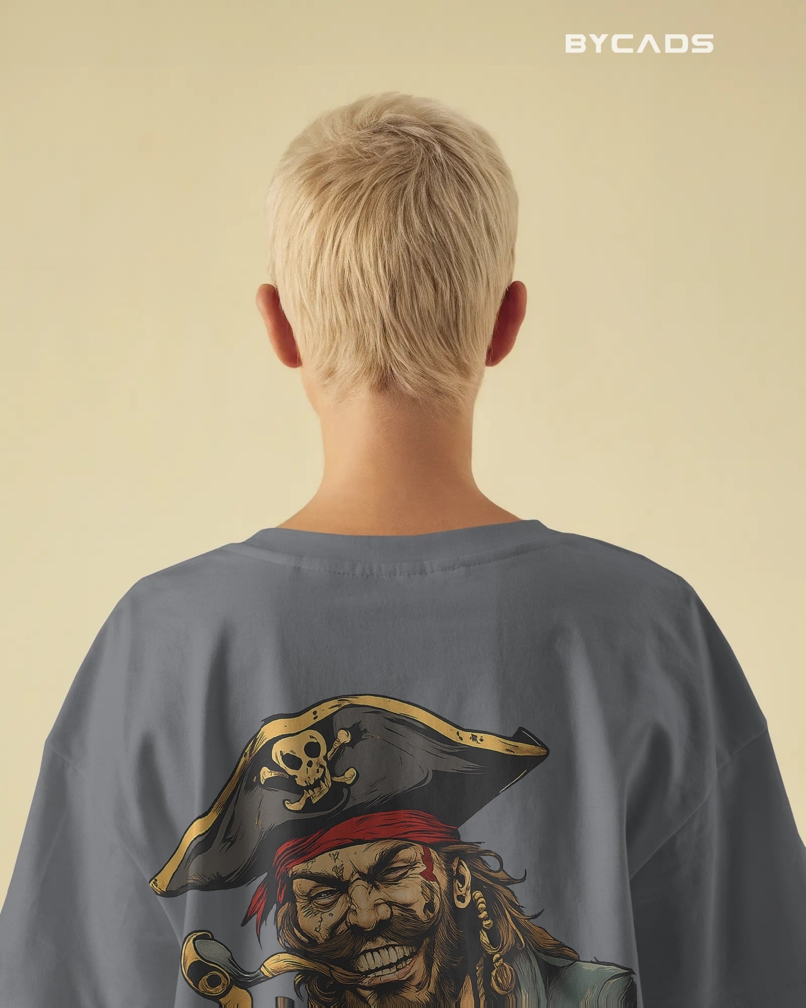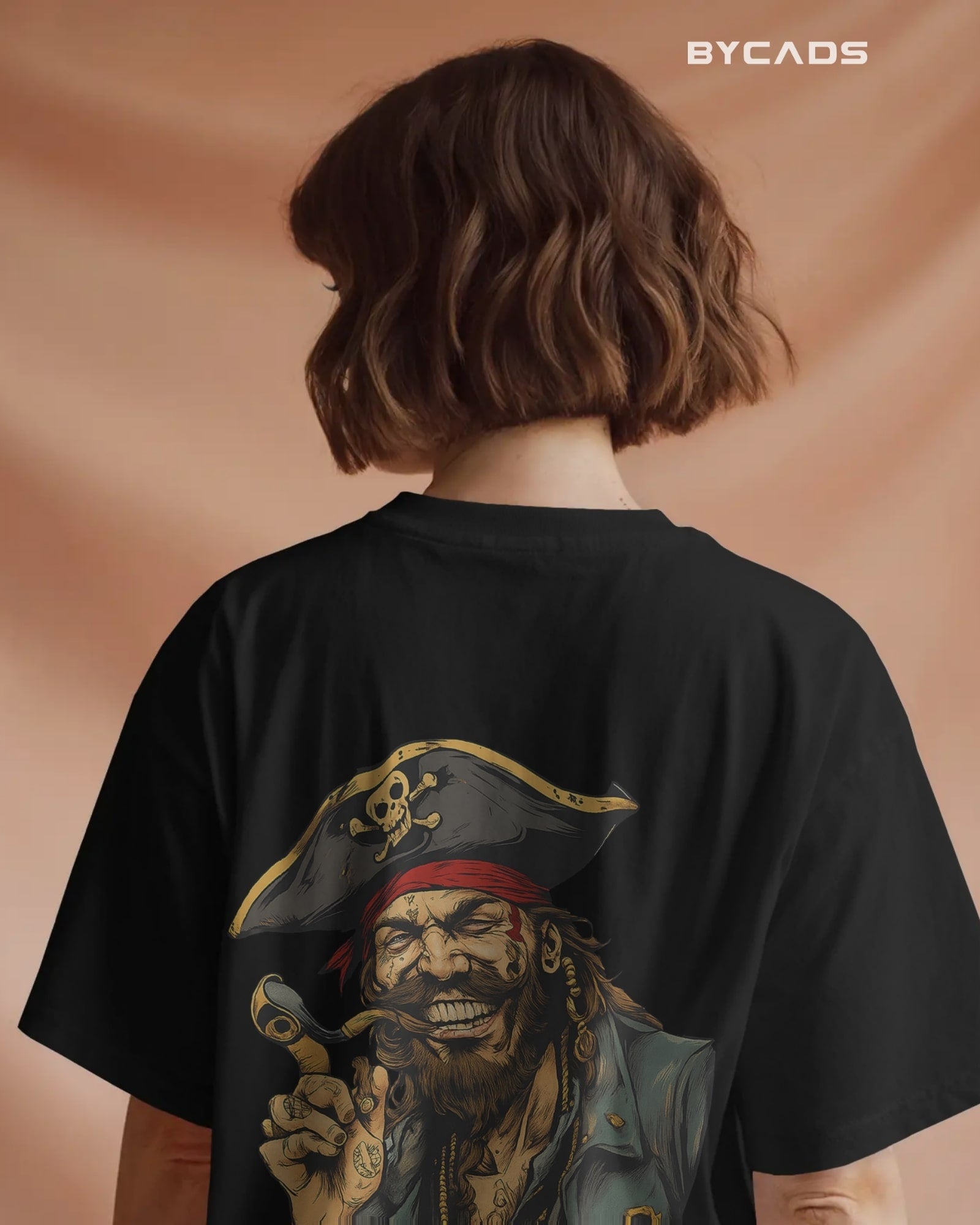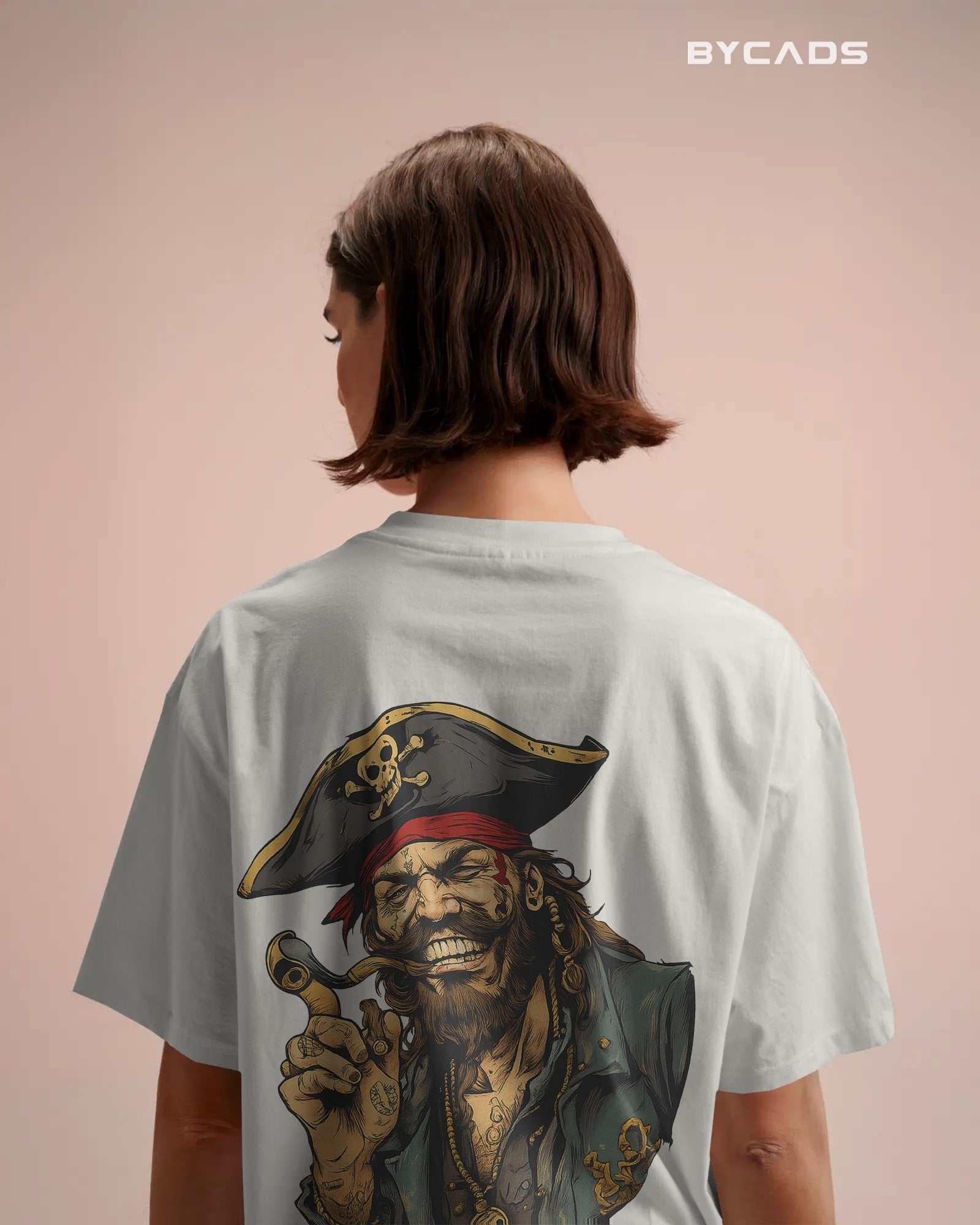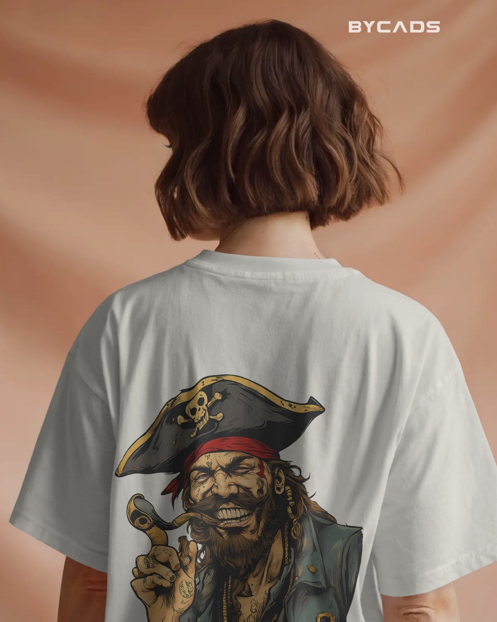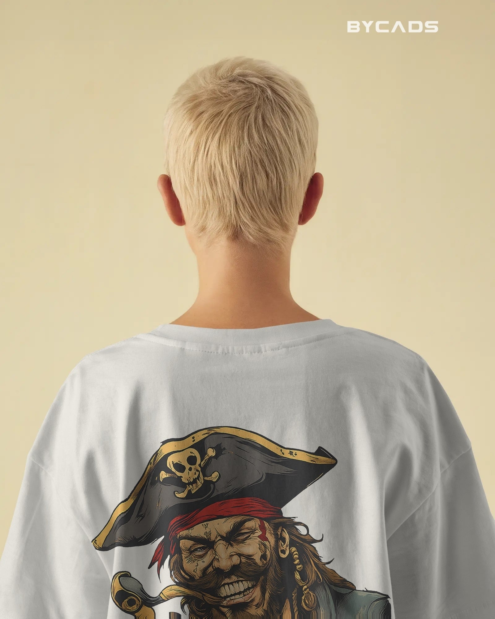 Wear this Rogue Pirate Oversized Tee from Bycads to embrace the wild spirit of the seven seas. This shirt, which features an angry hand-drawn pirate, combines a raw nautical soul with streetwear edge. Attention must be paid to every detail, from the captain's pipe to the scarred face. Made for renegades, nomads, and contemporary myths.