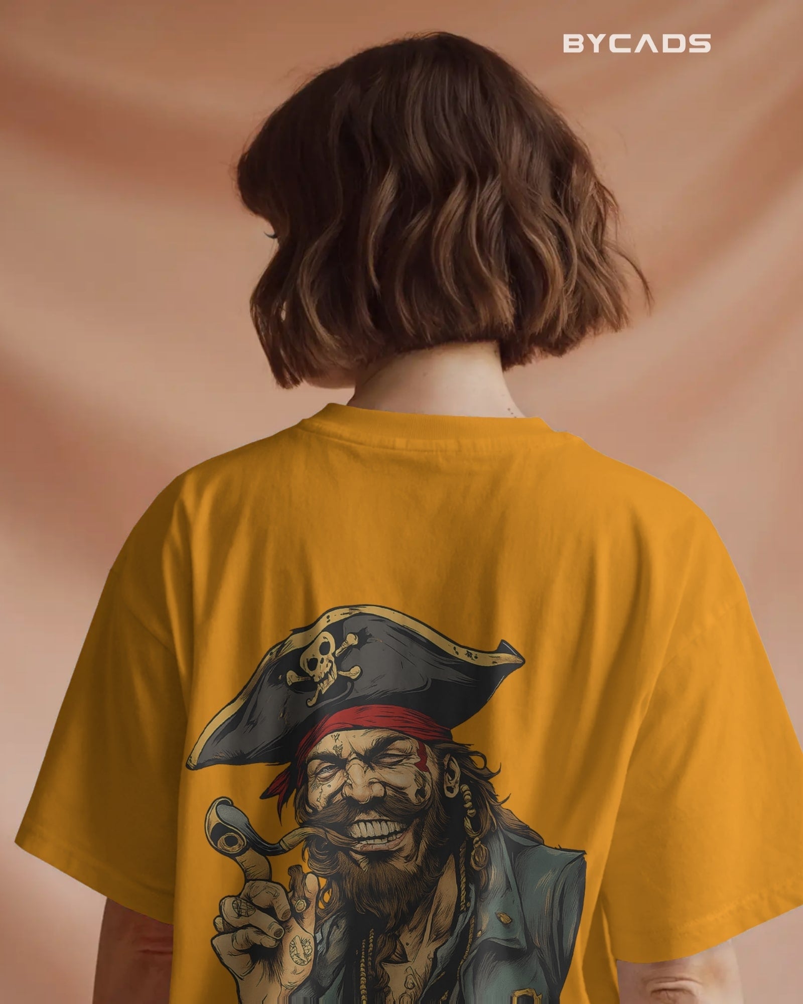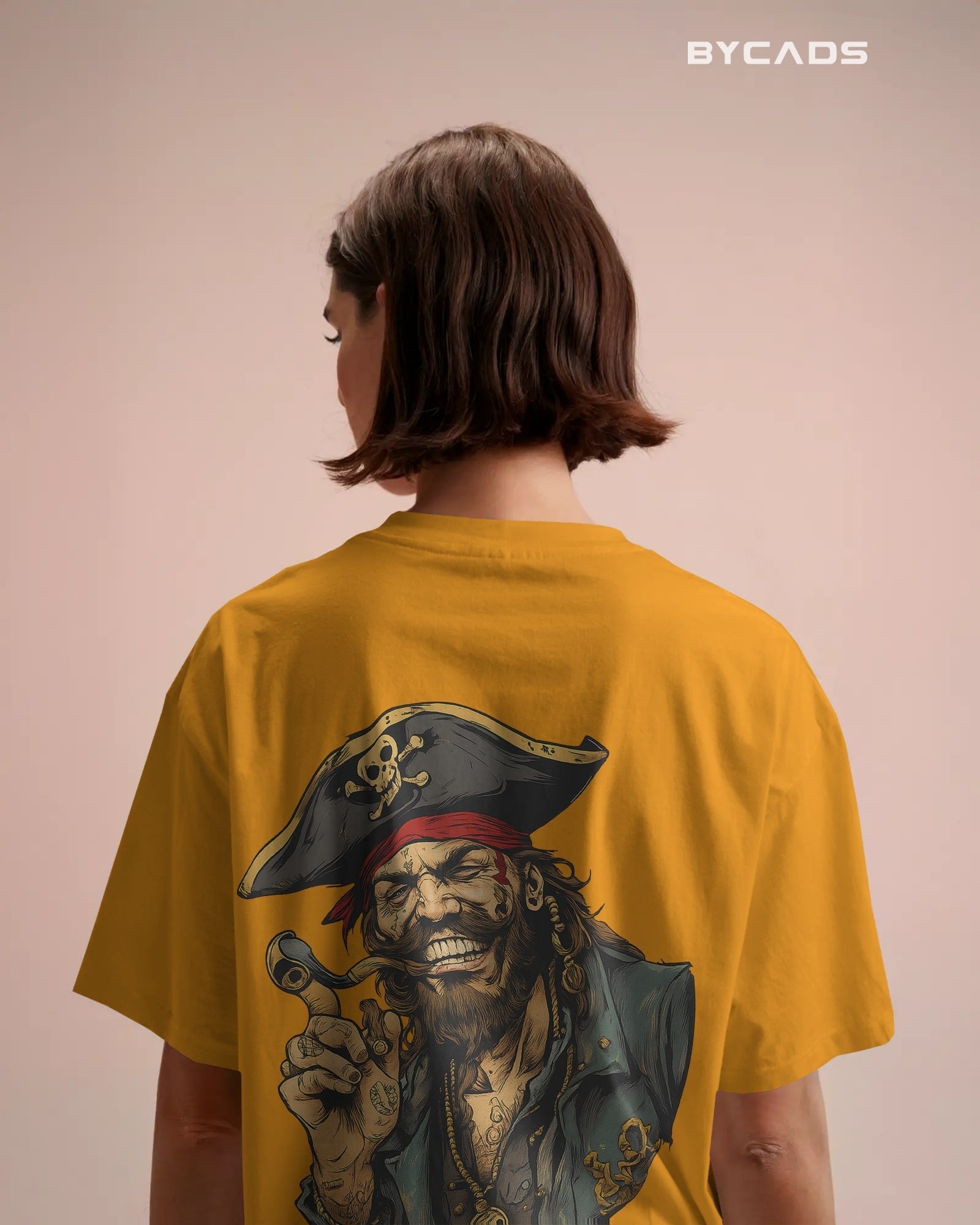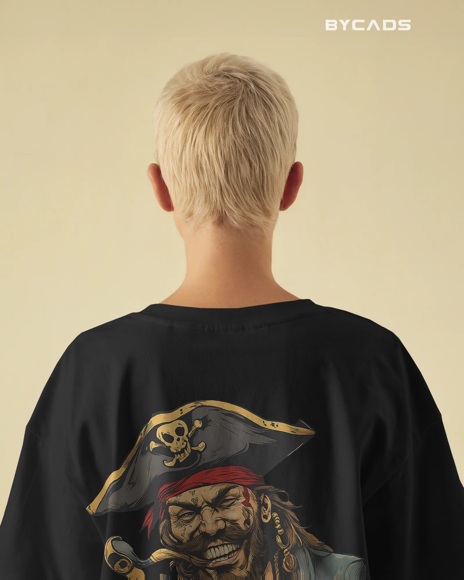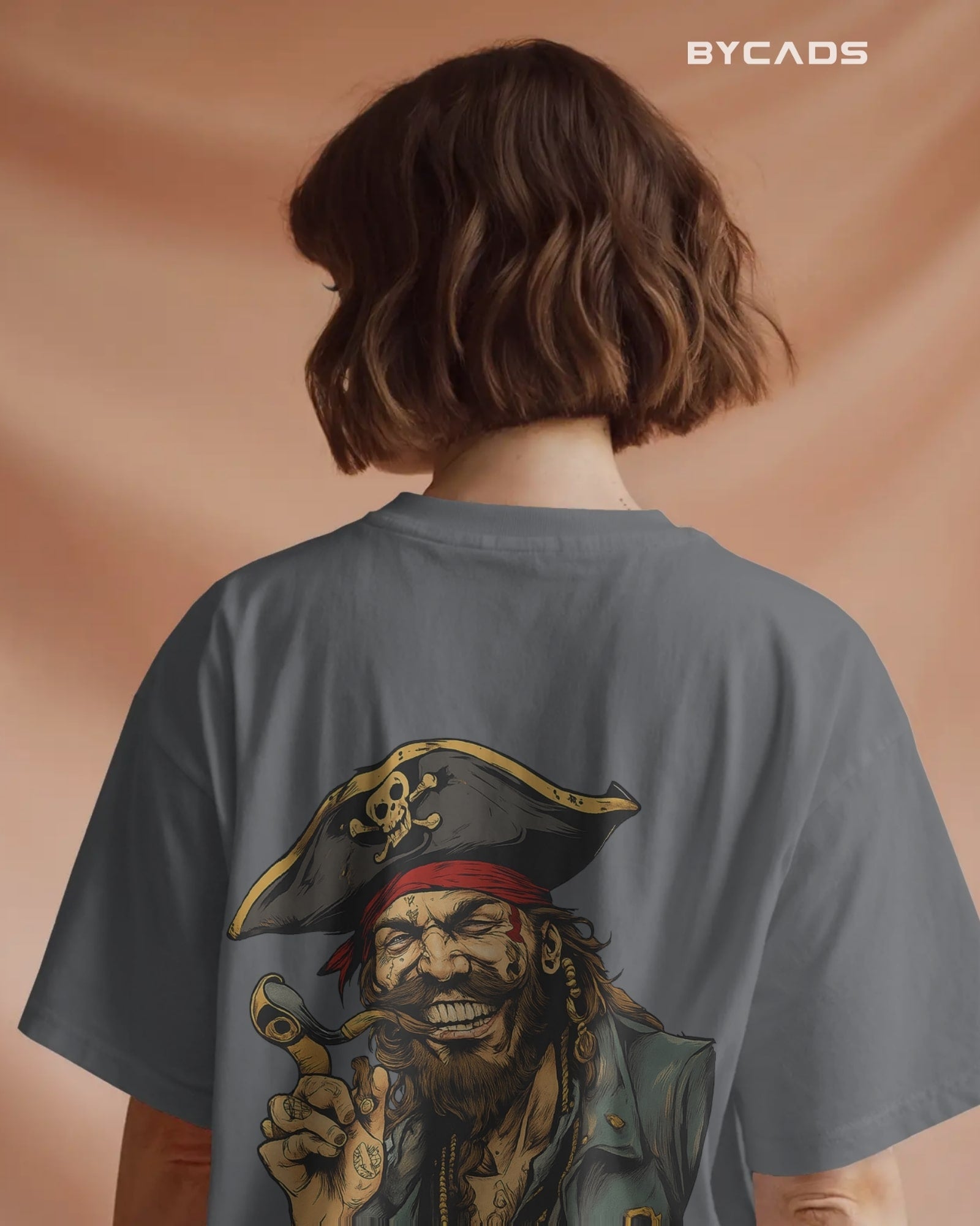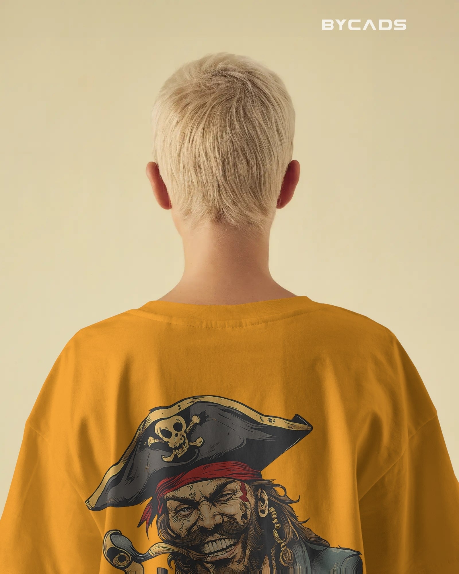 Wear this Rogue Pirate Oversized Tee from Bycads to embrace the wild spirit of the seven seas. This shirt, which features an angry hand-drawn pirate, combines a raw nautical soul with streetwear edge. Attention must be paid to every detail, from the captain's pipe to the scarred face. Made for renegades, nomads, and contemporary myths.