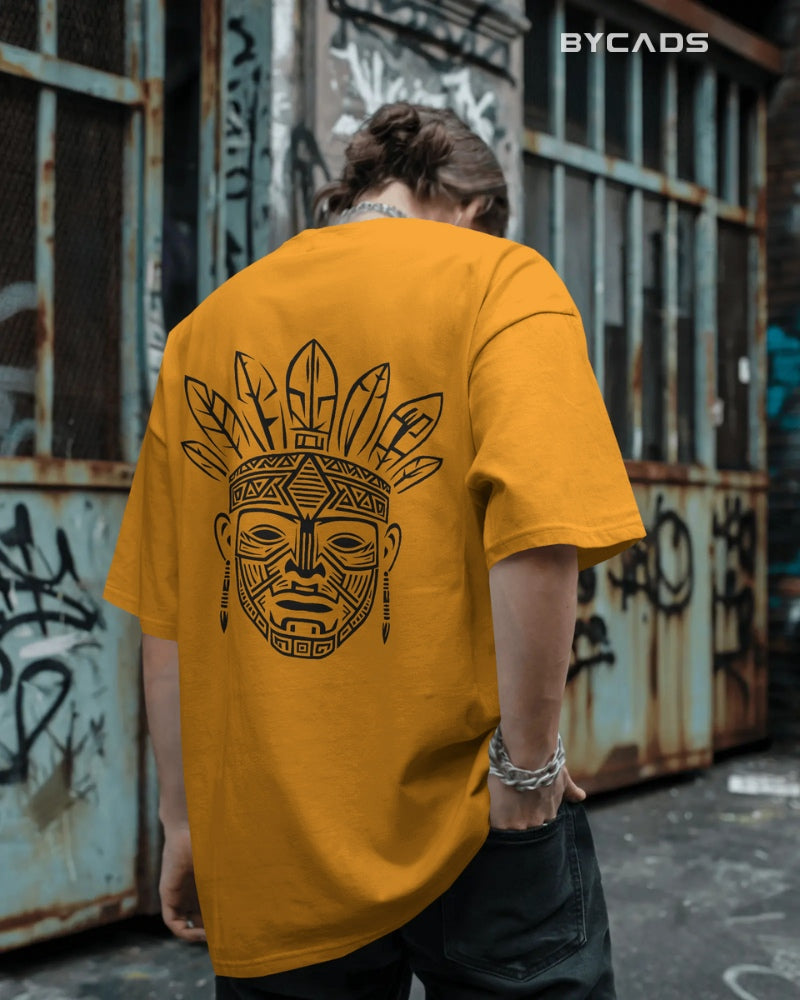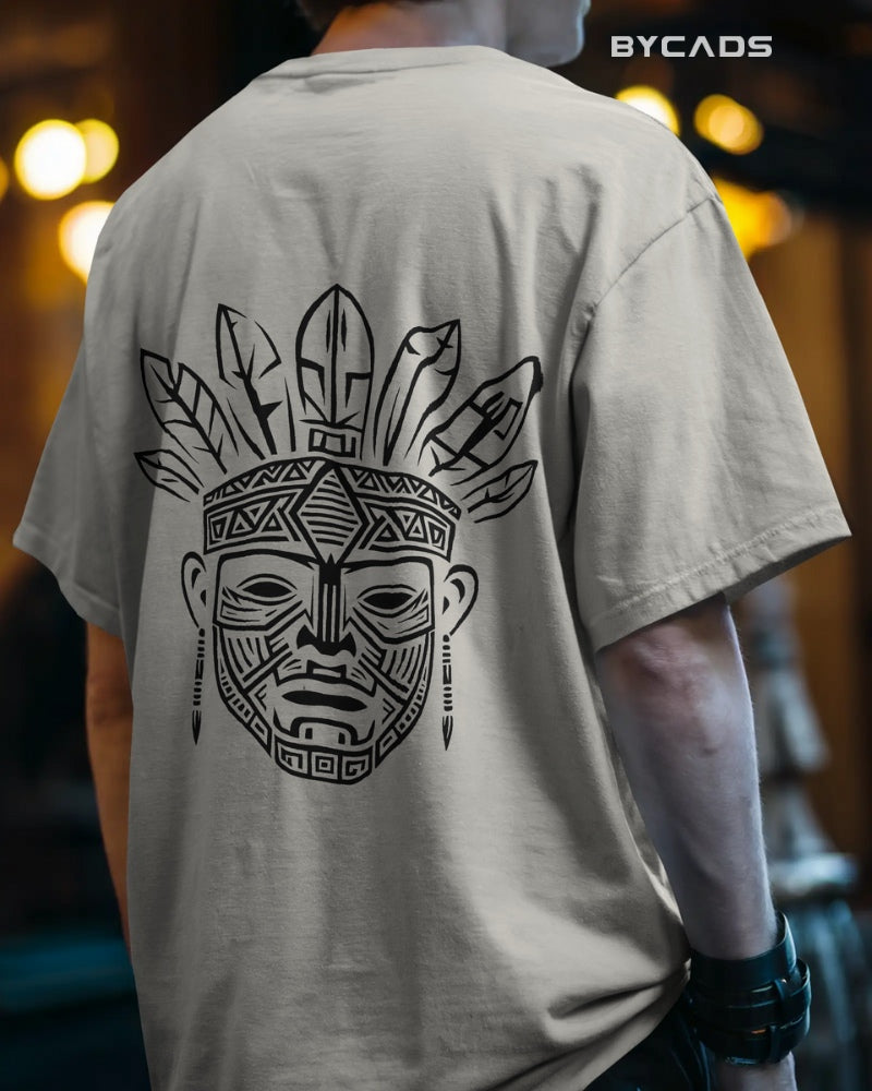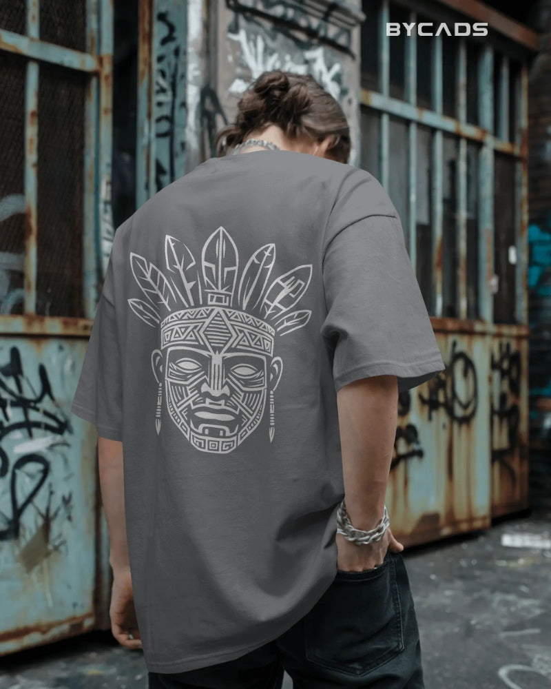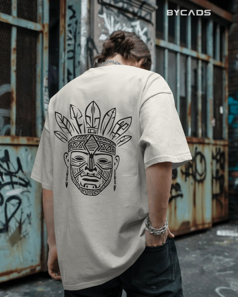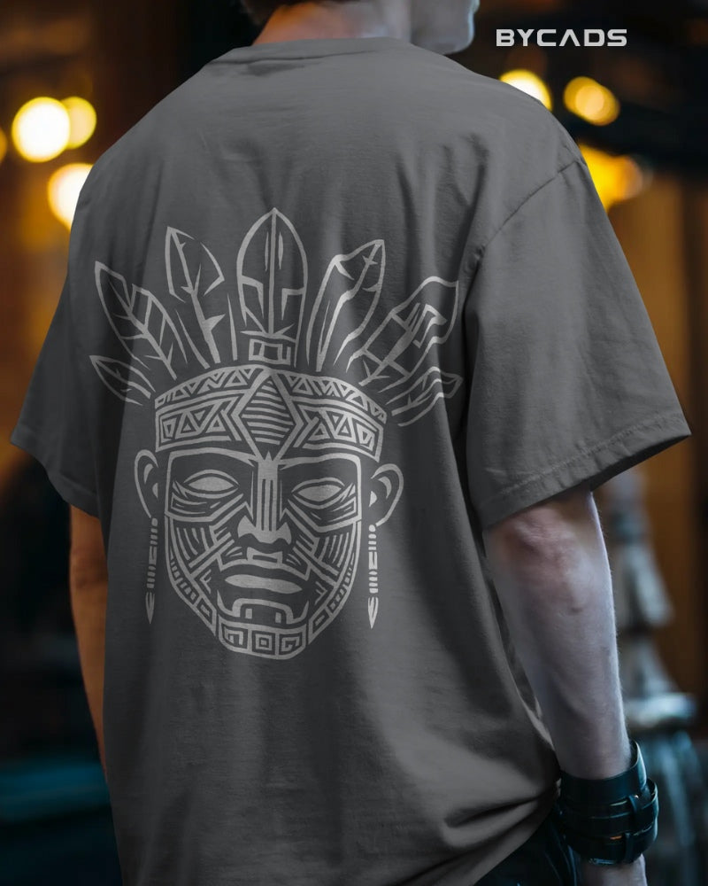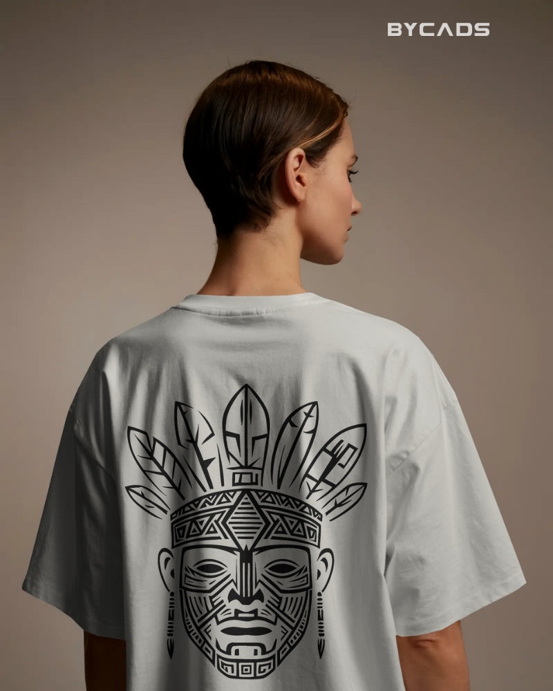 Channel the untamed force of ancient tribal power with the Tribal Warrior Spirit Oversized T-Shirt from Bycads. This captivating design features a striking tribal mask crowned with sharp feathered elements and intricate geometric patterns, symbolizing strength, honor, and ancestral energy. Every line and detail reflects the deep roots of indigenous warrior culture, fused seamlessly with modern streetwear flair.