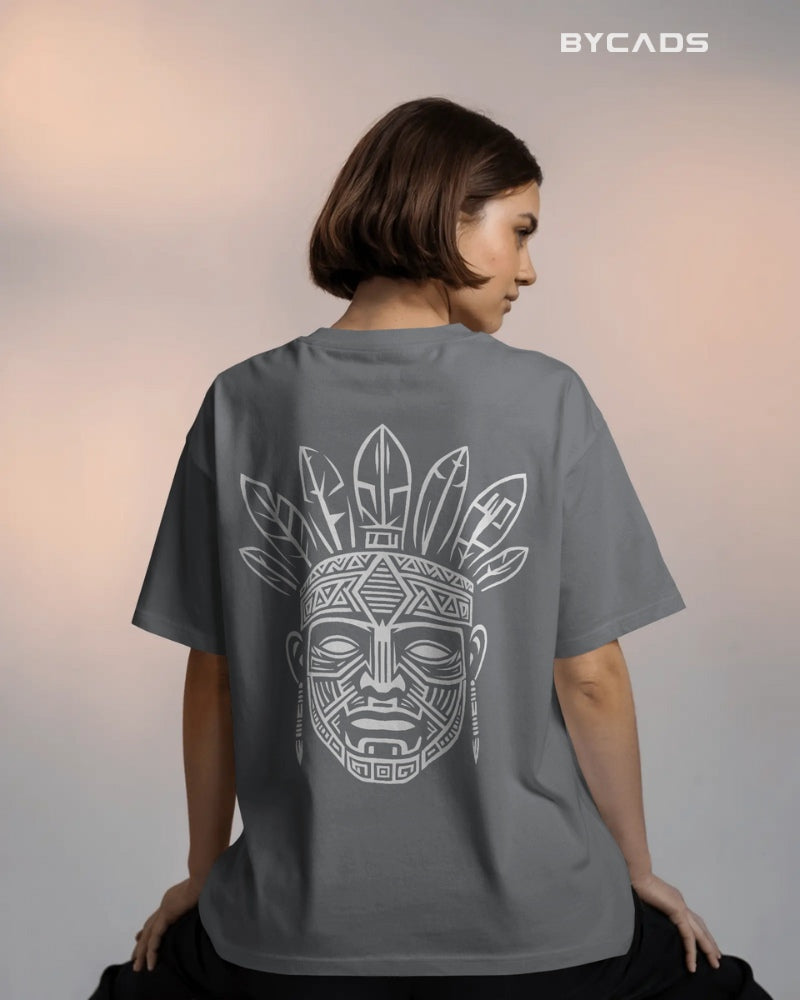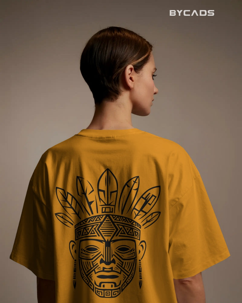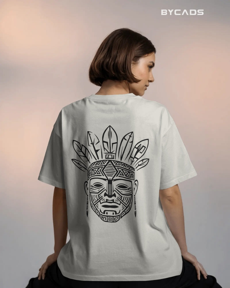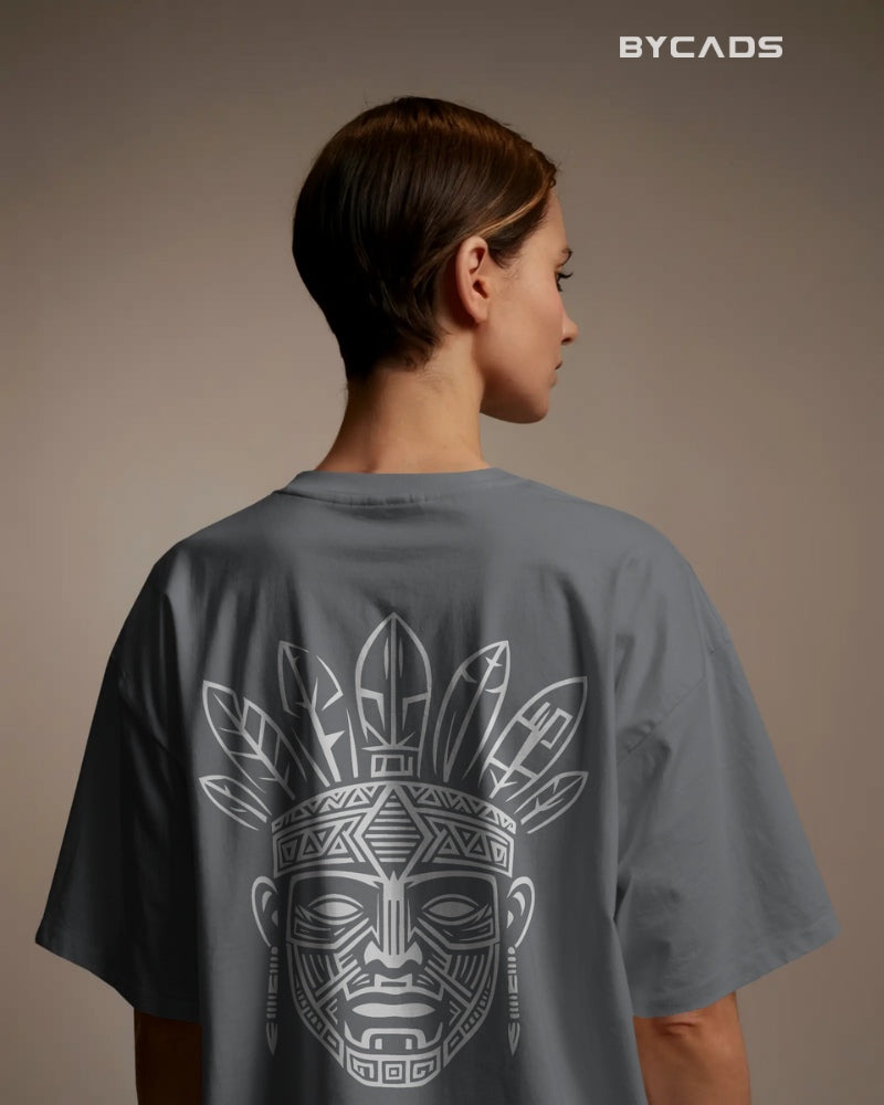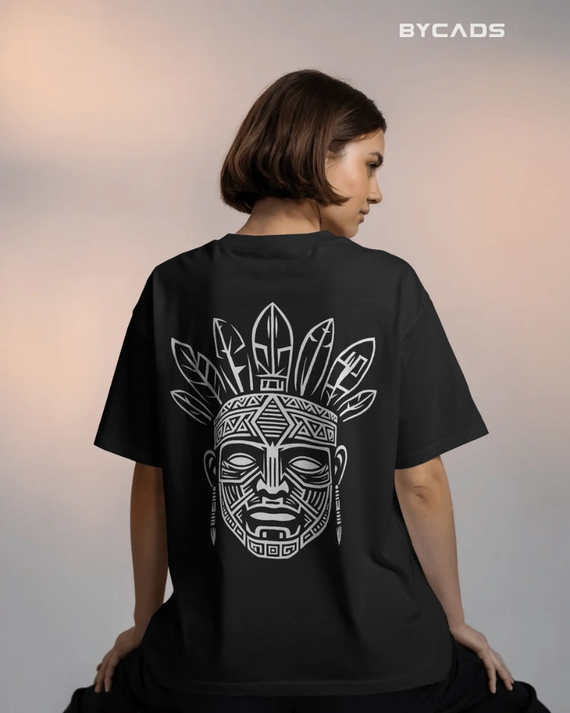 Channel the untamed force of ancient tribal power with the Tribal Warrior Spirit Oversized T-Shirt from Bycads. This captivating design features a striking tribal mask crowned with sharp feathered elements and intricate geometric patterns, symbolizing strength, honor, and ancestral energy. Every line and detail reflects the deep roots of indigenous warrior culture, fused seamlessly with modern streetwear flair.