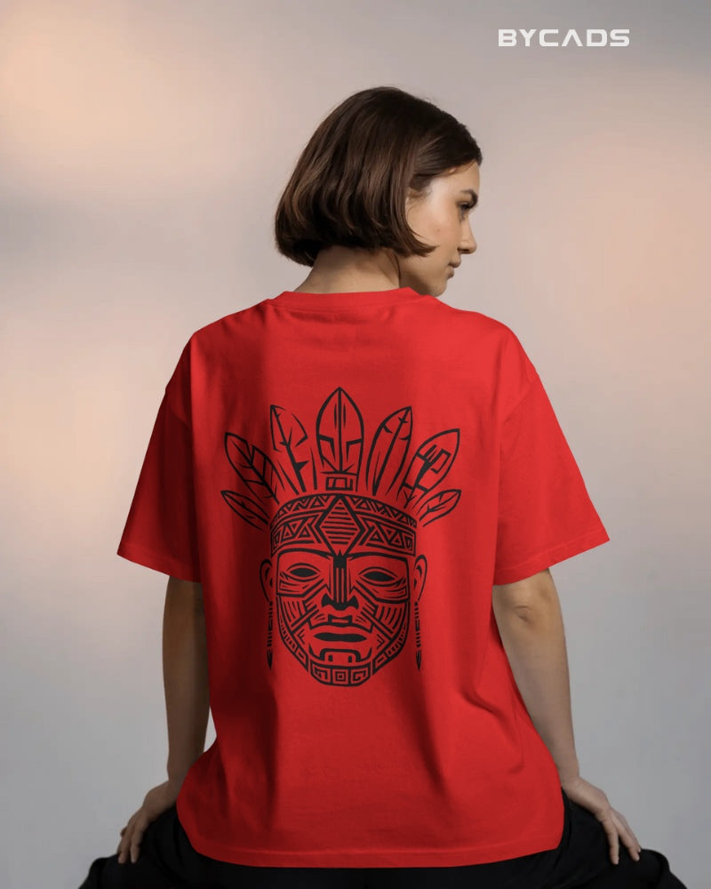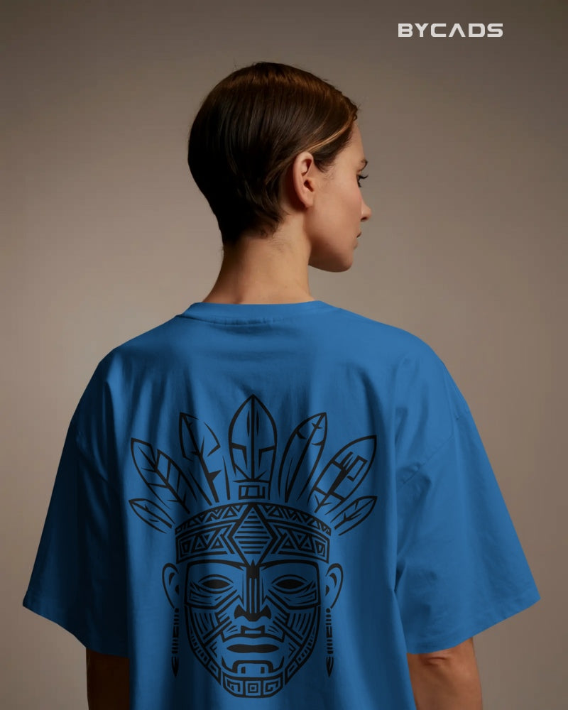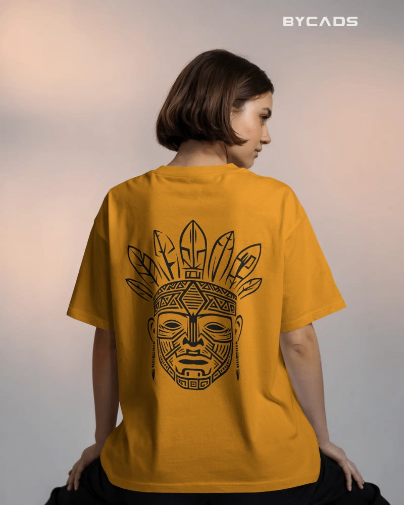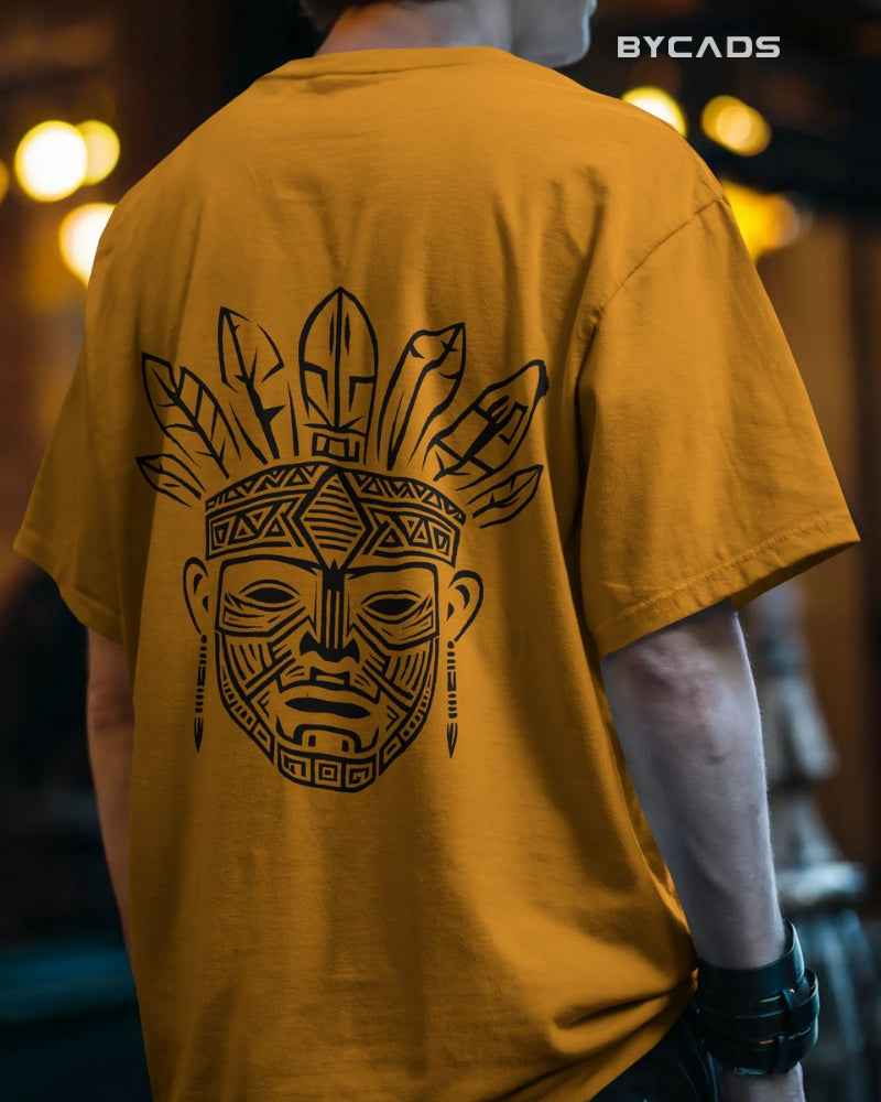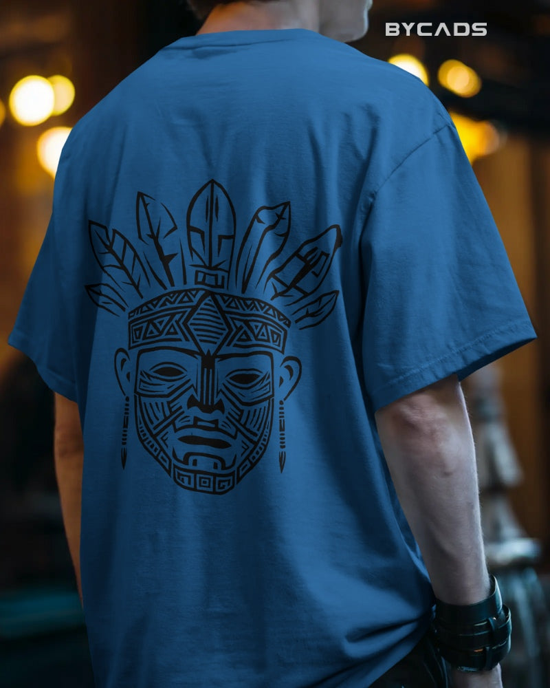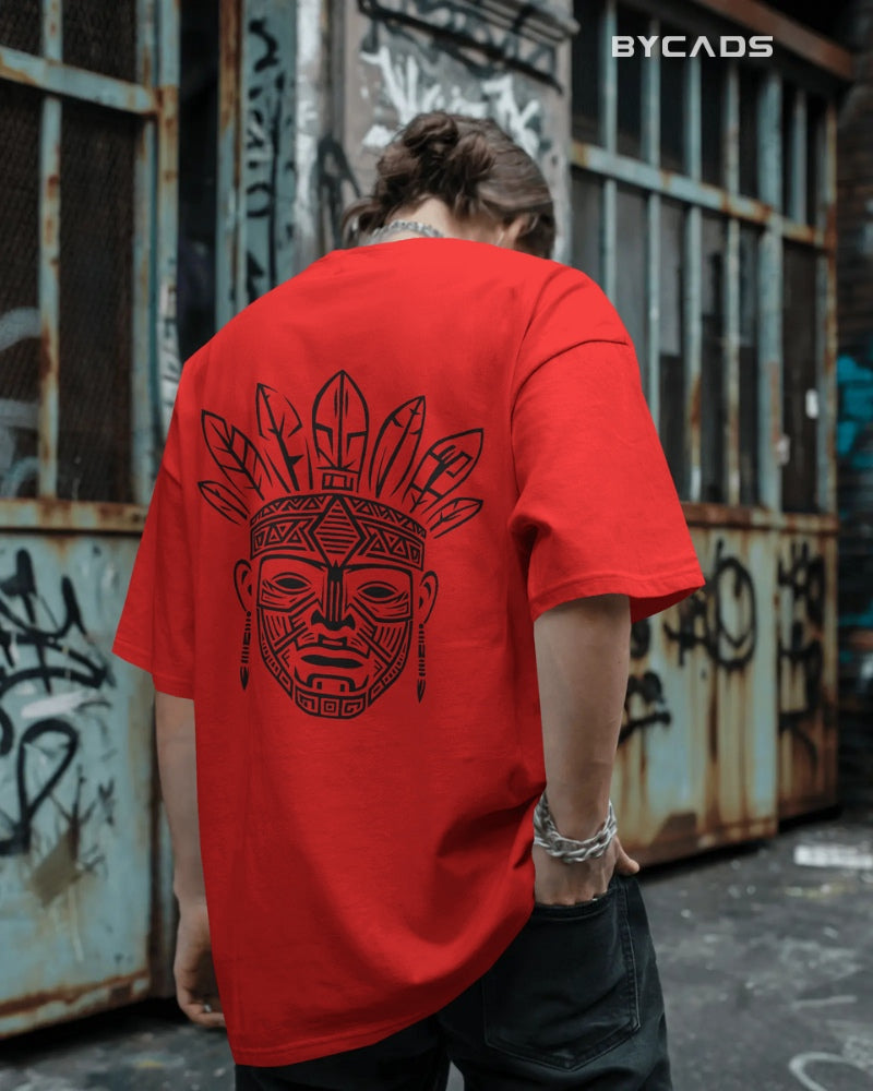Channel the untamed force of ancient tribal power with the Tribal Warrior Spirit Oversized T-Shirt from Bycads. This captivating design features a striking tribal mask crowned with sharp feathered elements and intricate geometric patterns, symbolizing strength, honor, and ancestral energy. Every line and detail reflects the deep roots of indigenous warrior culture, fused seamlessly with modern streetwear flair.